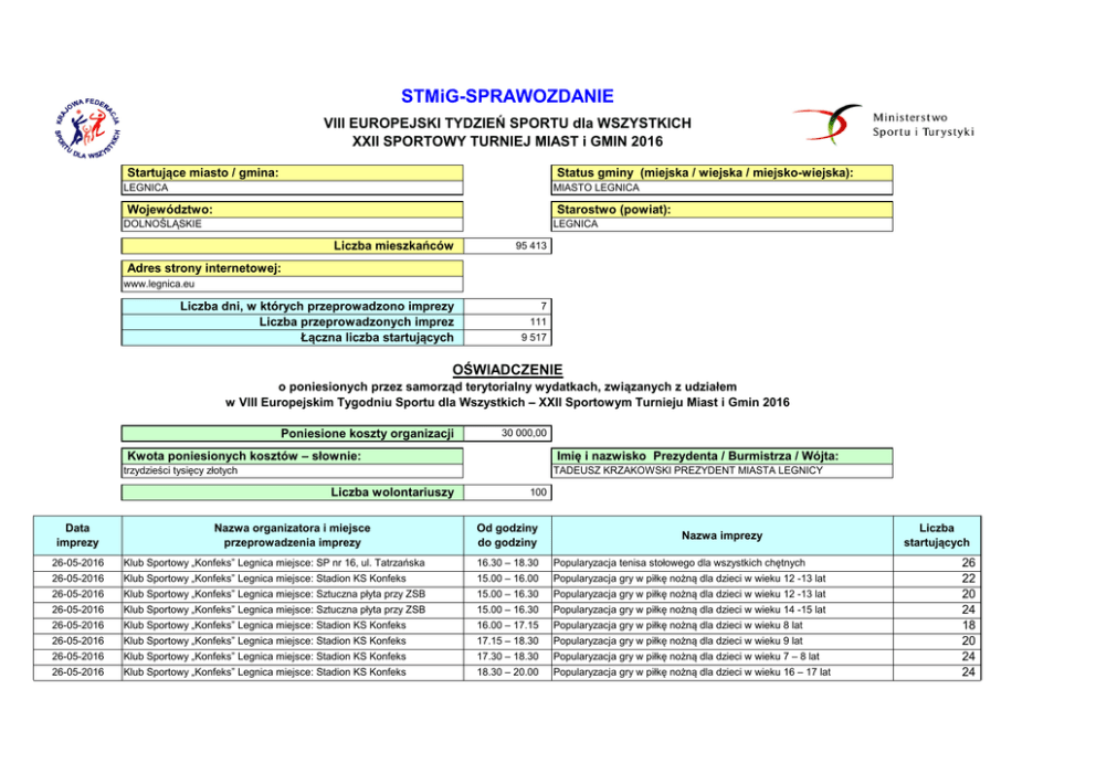 Sprawozdanie z przebiegu imprez w Legnicy w okresie