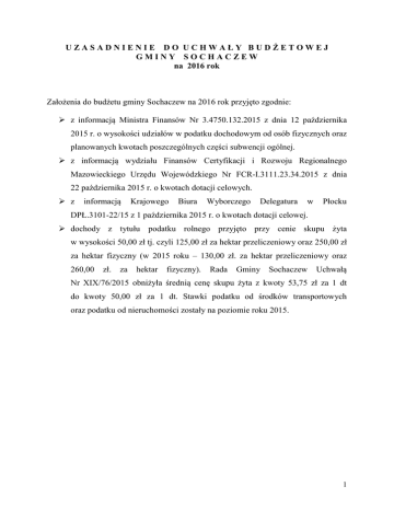 Uzasadnienie do Uchwały Budżetowej Gminy Sochaczew na 2016 rok