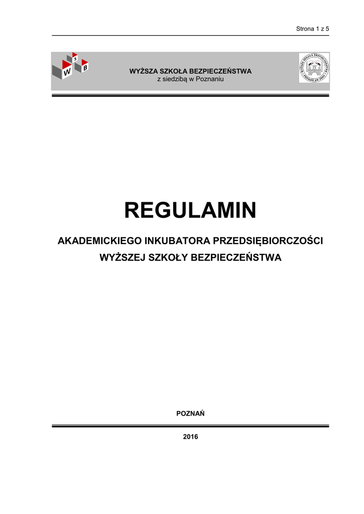 Regulamin Akademickiego Inkubatora Przedsiębiorczości WSB