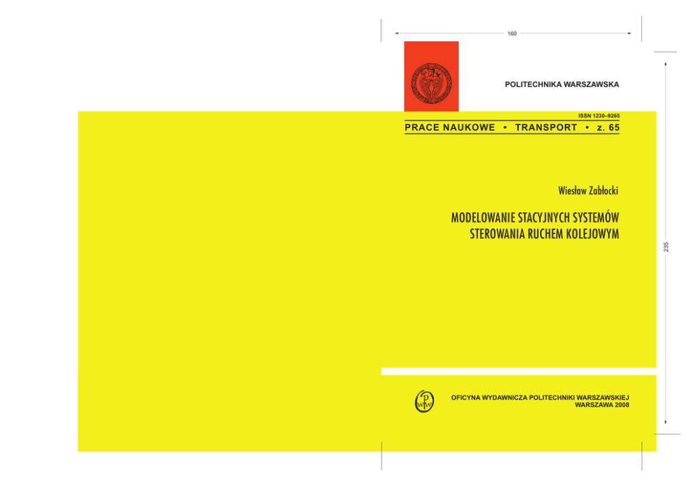 160 POLITECHNIKA WARSZAWSKA ISSN 1230–9265 PRACE NAUKOWE • TRANSPORT • z. 65 Wiesław Zabłocki 235 MODELOWANIE STACYJNYCH SYSTEMÓW STEROWANIA RUCHEM KOLEJOWYM OFICYNA WYDAWNICZA POLITECHNIKI WARSZAWSKIEJ WARSZAWA 2008 SPIS TREŚCI Słownik poje˛ciowy . . . . . . . . . . . . . . . . . . . . . . . . . . . . . . . . . . . . . . . . . . . . . . . . . . . . . . 4 Wykaz najważniejszych oznaczeń . . . . . . . . . . . . . . . . . . . . . . . . . . . . . . . . . . . . . . . . . . . . 6 1. WPROWADZENIE . . . . . . . . . . . . . . . . . . . . . . . . . . . . . . . . . . . . . . . . . . . . . . . . . . . 8 1.1. Modelowanie systemu srk na tle procesu transportowego . . . . . . . . . . . . . . . . . . . . . 8 1.2. Stan zagadnienia . . . . . . . . . . . . . . . . . . . . . . . . . . . . . . . . . . . . . . . . . . . . . . . . . 12 1.3. Cel i zakres pracy . . . . . . . . . . . . . . . . . . . . . . . . . . . . . . . . . . . . . . . . . . . . . . . . 20 2. SYSTEM STEROWANIA RUCHEM KOLEJOWYM . . . . . . . . . . . . . . . . . . . . . . . . . . . 26 2.1. System srk i zadanie sterowania . . . . . . . . . . . . . . . . . . . . . . . . . . . . . . . . . . . . . . 26 2.2. Opis nieformalny i formalny systemu srk . . . . . . . . . . . . . . . . . . . . . . . . . . . . . . . . 30 2.3. Droga przebiegu i przebieg . . . . . . . . . . . . . . . . . . . . . . . . . . . . . . . . . . . . . . . . . . 33 2.4. Sterowanie na stacji. Sprzeczność dróg przebiegów . . . . . . . . . . . . . . . . . . . . . . . . . 36 2.5. Wybrane dokumenty opisu nieformalnego . . . . . . . . . . . . . . . . . . . . . . . . . . . . . . . 41 3. MODELOWANIE SYSTEMU srk . . . . . . . . . . . . . . . . . . . . . . . . . . . . . . . . . . . . . . . . . 50 3.1. Model systemu srk . . . . . . . . . . . . . . . . . . . . . . . . . . . . . . . . . . . . . . . . . . . . . . . . 50 3.2. Odwzorowanie układu torowego . . . . . . . . . . . . . . . . . . . . . . . . . . . . . . . . . . . . . . 59 3.3. Model drogi przebiegu . . . . . . . . . . . . . . . . . . . . . . . . . . . . . . . . . . . . . . . . . . . . . 62 3.4. Statyczne i dynamiczne struktury informacji . . . . . . . . . . . . . . . . . . . . . . . . . . . . . . 66 3.5. Przykład struktur . . . . . . . . . . . . . . . . . . . . . . . . . . . . . . . . . . . . . . . . . . . . . . . . . 72 3.6. Własności drogi przebiegu i przebiegu . . . . . . . . . . . . . . . . . . . . . . . . . . . . . . . . . . 76 4. RELACJE, FUNKCJE I RÓWNANIA ZALEŻNOŚCIOWE . . . . . . . . . . . . . . . . . . . . . . . 77 4.1. Relacje i funkcje sprzeczności dróg przebiegów . . . . . . . . . . . . . . . . . . . . . . . . . . . 77 4.1.1. Sprzeczność statyczna . . . . . . . . . . . . . . . . . . . . . . . . . . . . . . . . . . . . . . . . . 79 4.1.2. Wyznaczanie wartości funkcji sprzeczności statycznej . . . . . . . . . . . . . . . . . . . 84 4.1.3. Sprzeczność dynamiczna i równania zależnościowe sprzeczności . . . . . . . . . . . 87 4.2. Funkcje i równania zależnościowe przebiegu . . . . . . . . . . . . . . . . . . . . . . . . . . . . . 91 4.2.1. Wste˛p . . . . . . . . . . . . . . . . . . . . . . . . . . . . . . . . . . . . . . . . . . . . . . . . . . . . 91 4.2.2. Podstawowe stany przebiegu . . . . . . . . . . . . . . . . . . . . . . . . . . . . . . . . . . . . 93 4.2.3. Predyspozycje przebiegowe i kryteria zwalniania przebiegu . . . . . . . . . . . . . . . 95 4.2.4. Wyznaczanie wartości predyspozycji i kryteriów . . . . . . . . . . . . . . . . . . . . . . 99 4.2.5. Stan przebiegu w rzeczywistym systemie srk . . . . . . . . . . . . . . . . . . . . . . . . . 104 4.3. Funkcje zależnościowe i sygnały obiektów . . . . . . . . . . . . . . . . . . . . . . . . . . . . . . . 107 4.3.1. Funkcje zależnościowe odwzorowuja˛ce stany przebiegów w obiektach . . . . . . . 108 4.3.2. Funkcje stanu własnego obiektów . . . . . . . . . . . . . . . . . . . . . . . . . . . . . . . . . 112 4.3.3. Funkcje sygnałów wyjściowych z obiektów . . . . . . . . . . . . . . . . . . . . . . . . . . 115 4.4. Przetwarzanie funkcji zależnościowych . . . . . . . . . . . . . . . . . . . . . . . . . . . . . . . . . 117 4.5. Przykłady funkcji i równań zależnościowych . . . . . . . . . . . . . . . . . . . . . . . . . . . . . 119 5. SYMULATOR SYSTEMU srk i EKSPERYMENTY SYMULACYJNE . . . . . . . . . . . . . . . 138 5.1. Wybór metody symulacji . . . . . . . . . . . . . . . . . . . . . . . . . . . . . . . . . . . . . . . . . . . 138 5.2. Program zarza˛dzaja˛cy symulacja˛ w środowisku systemu operacyjnego czasu rzeczywistego . . . . . . . . . . . . . . . . . . . . . . . . . . . . . . . . . . . . . . . . . . . . . . . . . . . . . . . . . 141 5.3. Programy symulatora . . . . . . . . . . . . . . . . . . . . . . . . . . . . . . . . . . . . . . . . . . . . . . 144 5.4. Symulator stanowisko badawcze s2000 . . . . . . . . . . . . . . . . . . . . . . . . . . . . . . . . 147 5.5. Uwarunkowania poprawności modelu . . . . . . . . . . . . . . . . . . . . . . . . . . . . . . . . . . 148 5.6. Eksperymenty symulacyjne . . . . . . . . . . . . . . . . . . . . . . . . . . . . . . . . . . . . . . . . . . 150 6. PODSUMOWANIE . . . . . . . . . . . . . . . . . . . . . . . . . . . . . . . . . . . . . . . . . . . . . . . . . . . 154 Bibliografia . . . . . . . . . . . . . . . . . . . . . . . . . . . . . . . . . . . . . . . . . . . . . . . . . . . . . . . . . . . . 157 ZAŁA˛CZNIK 1. Oznaczenia sygnałów i wektorów sygnałów w obiekcie . . . . . . . . . . . . . . . . . 163 ZAŁA˛CZNIK 2. Macierz dynamiczna MD stanów obiektów . . . . . . . . . . . . . . . . . . . . . . . . . 165 ZAŁA˛CZNIK 3. Sygnały i wektory poszczególnych typów obiektów . . . . . . . . . . . . . . . . . . . 166 ZAŁA˛CZNIK 4. Stanowisko symulatora S2000 . . . . . . . . . . . . . . . . . . . . . . . . . . . . . . . . . . 173 ZAŁA˛CZNIK 5. Odwzorowanie przebiegu A−D . . . . . . . . . . . . . . . . . . . . . . . . . . . . . . . . . . 176 Summary. Modelling o