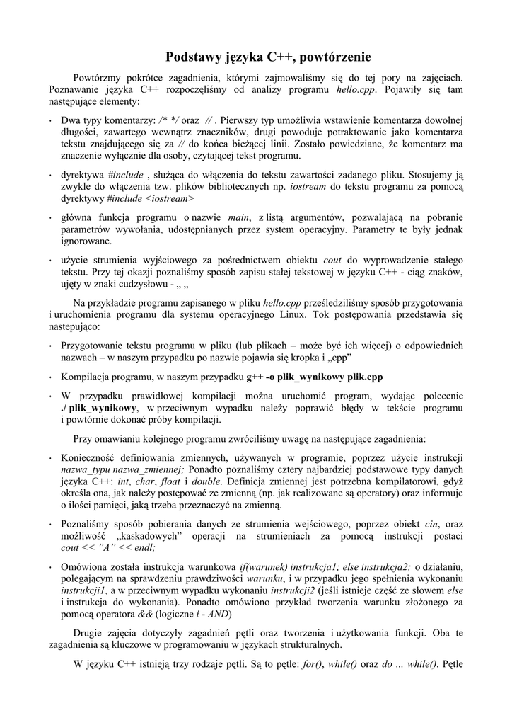 Poznawanie języka C++ rozpoczęliśmy od analizy programu hello.cpp. Pojawiły się tam