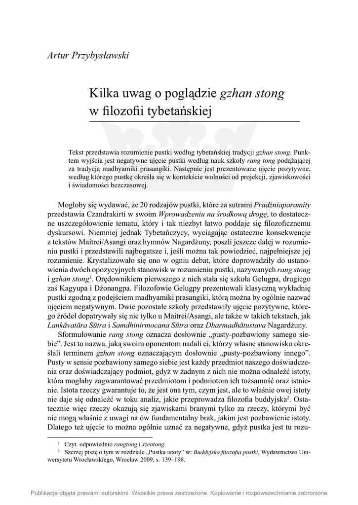 Kilka uwag o poglądzie gzhan stong w filozofii