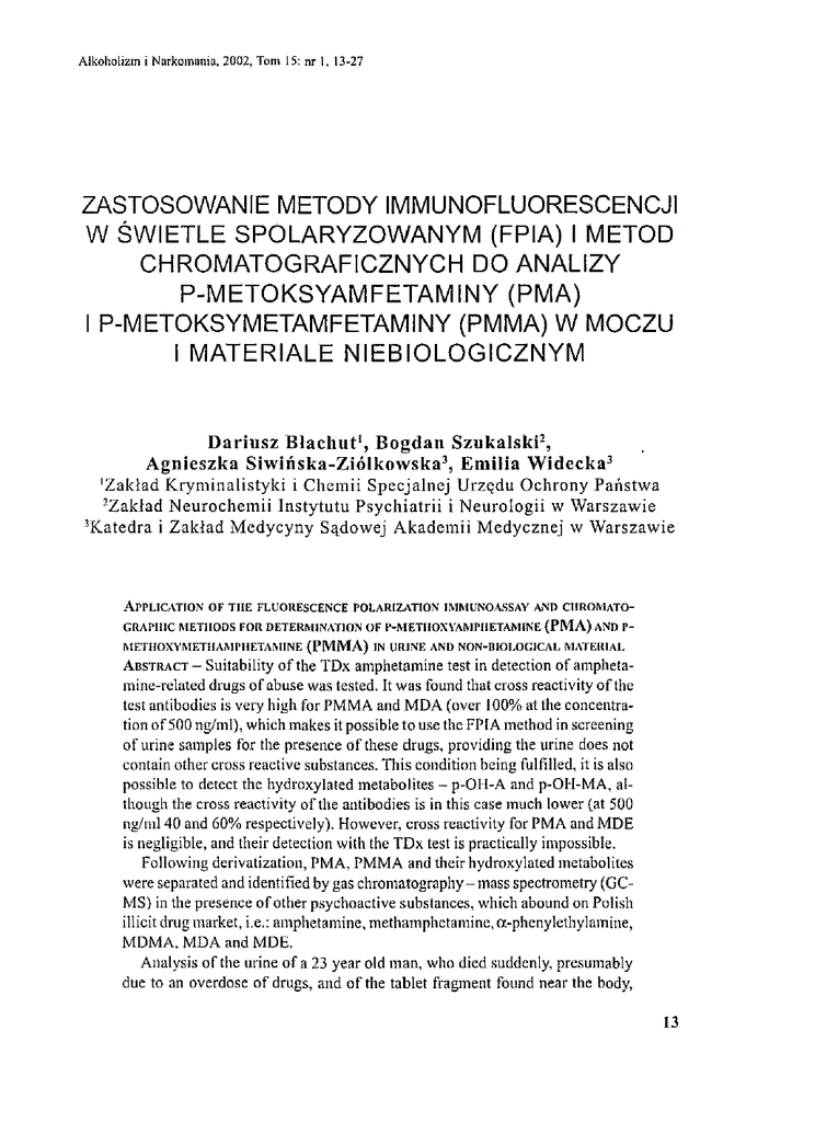 I P-METOKSYMETAMFETAMINY (PMMA) W MOCZU