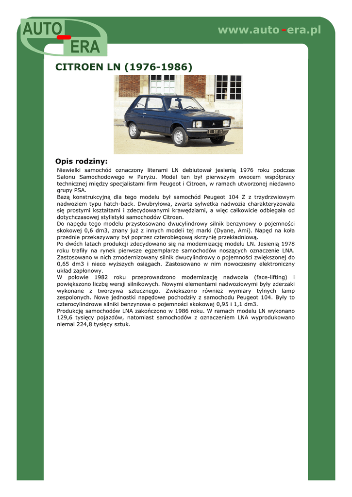 Opis rodziny: CITROEN LN. - AUTO-ERA