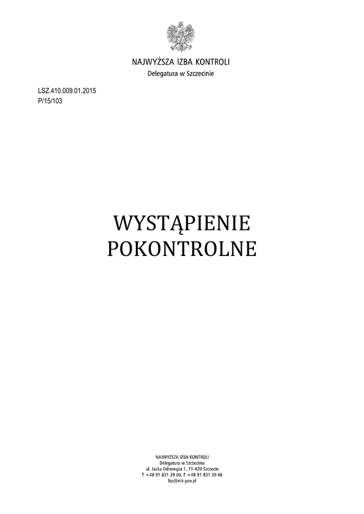 LSZ.410.009.01.2015 P/15/103 WYSTĄPIENIE POKONTROLNE I. Dane identyfikacyjne kontroli Numer i tytuł kontroli P/15/103 – Funkcjonowanie rodzinnych ośrodków diagnostyczno-konsultacyjnych. Jednostka Najwyższa Izba Kontroli Delegatura w Szczecinie przeprowadzająca kontrolę Kontroler Leszek Smykowski specjalista kontroli państwowej, upoważnienie do kontroli nr 93655 z dnia 9 kwietnia 2015 r. (dowód: akta kontroli str. 1-2) Jednostka kontrolowana Rodzinny Ośrodek Diagnostyczno-Konsultacyjny w Szczecinie, ul. Ku Słońcu 23/24, 71 – 080 Szczecin 1. Kierownik jednostki Joanna Podgórska-Klepajczuk – kierownik RODK 2. kontrolowanej (dowód: akta kontroli str. 3) II. Ocena kontrolowanej działalności3 Ocena ogólna Uzasadnienie oceny ogólnej Najwyższa Izba Kontroli pozytywnie ocenia, mimo stwierdzonych nieprawidłowości, działalność Ośrodka w latach 2013-2015 (I kwartał). W okresie objętym kontrolą RODK sporządzał opinie na zlecenie sądów lub prokuratury zgodnie z wymogami rozporządzenia Ministra Sprawiedliwości z dnia 3 sierpnia 2001 r. w sprawie organizacji i zakresu działania rodzinnych ośrodków diagnostyczno-konsultacyjnych4. Prowadził wymagane rodzaje ewidencji oraz sporządzał sprawozdania statystyczne z prowadzonej działalności. Stwierdzone nieprawidłowości w sposobie realizacji ww. zadań polegały m.in. na: - nie spełnianiu wymogów określonych w części I pkt 4) Standardów Opiniowania w Rodzinnych Ośrodkach Diagnostyczno-Konsultacyjnych5 przy sporządzaniu dokumentacji z przeprowadzanych badań diagnostycznych, co dotyczyło 55% spraw z 20 wybranych do szczegółowej kontroli, - zamieszczaniu w opiniach nierzetelnych informacji o przeprowadzonych badaniach diagnostycznych, co dotyczyło 10% spraw objętych szczegółową kontrolą; - błędnym wyliczaniu wysokości należności za badania diagnostyczne i sporządzane opinie w sprawach nieletnich, - nieterminowym sporządzeniu 6 opinii na zlecenie sądu (0,5 % wydanych opinii w kontrolowanym okresie), tj. przekazaniu ich po upływie terminów określonych w § 11 ust. 1 rozporządzenia w sprawie RODK6 ; - dokonywania nierzetelnych wpisów w Rejestrze wpływu spraw oraz Rejestrze wykonanych badań dat wysłania do sądu opinii. Skutkowało to przedstawieniem w rocznych sprawozdaniach statystycznych MS-RODK-25 nierzetelnych danych. 1 Dalej „Ośrodek” lub „RODK”. Dalej „Kierownik Ośrodka” lub „Kierownik RODK”, przez cały okres objęty kontrolą. 3 Najwyższa Izba Kontroli stosuje 3-stopniową skalę ocen: pozytywna, pozytywna mimo stwierdzonych nieprawidłowości, negatywna. 4 Dz. U. Nr 97, poz. 1063, dalej także: „rozporządzenie w sprawie RODK”. 5 Standardy opiniowania zatwierdzone w dniu 28.03.2011 r. przez Podsekretarza Stanu w Ministerstwie Sprawiedliwości, zwane dalej „Standardami” lub „Standardami Opiniowania”. 6 Tj. po upływie 14 dni od daty zakończenia badań diagnostycznych - w przypadku opinii w sprawach dotyczących nieletnich lub po upływie 30 dni – w przypadku opinii w pozostałych rodzajach spraw. 2 2 Kierownik Ośrodka podejmowała działania mające na celu poprawę jakości pracy oraz usprawnienie procesu przeprowadzania badań i wydawania opinii, o czym świadczyły m.in. wydawane procedury dot. realizacji zadań oraz usprawnienia w pracy Ośrodka wprowadzone po dwóch lustracjach Ministerstwa Sprawiedliwości. Zmniejszeniu uległa liczba spraw załatwianych na zlecenie sądu w terminie powyżej 90 dni: z 522 - w 2013 r., do 495 - w 2014 r. oraz do 38 – w I kwartale 2015 r. W I kwartale 2015 r. nie wystąpiły przypadki nieterminowego wydania opinii. III. Opis ustalonego stanu faktycznego 1. 1.1. Opis stanu faktycznego Organizacja, finansowanie i warunki prowadzenia działalności. Organizacja i finansowanie prowadzonej działalności. RODK funkcjonował w 2013-2015 (I kwartał) w obszarze właściwości Sądu Okręgowego w Szczecinie7 zgodnie z § 4 ust. 1 rozporządzenia w sprawie RODK oraz zgodnie z § 1 pkt 34 zarządzenia Ministra Sprawiedliwości z dnia 18 maja 2001 r. w sprawie utworzenia rodzinnych ośrodków diagnostyczno-konsultacyjnych8. Przy sądzie działał jeden RODK, który wchodził w skład jego struktury organizacyjnej. (dowód: akta kontroli 4-8, 12-23) Organizację i zakres działalności Ośrodka oraz podstawowe obowiązki kierownika i pozostałych pracowników określał Regulamin organizacyjny RODK z dnia 1 września 2001 r. W regulaminie nie było opisanych zasad prowadzenia gospodarki finansowej Ośrodka oraz błędnie podano, że nadzór pedagogiczny nad pracą Ośrodka sprawuje Minister Sprawiedliwości – Okręgowy Zespół Nadzoru Pedagogicznego przy Sądzie Okręgowym w Poznaniu. (dowód: akta kontroli str. 4-8) Kierownik Ośrodka w wyjaśnieniach uznała za zasadne dokonanie aktualizacji regulaminu w ww. zakresie. (dowód: akta kontroli str.135-136) W kontrolowanym okresie plany finansowe sporządzał i obsługę finansowoksięgową Ośrodka prowadził Sąd Okręgowy w Szczecinie. Kierownik Ośrodka nie była informowana przez Sąd Okręgowy o wielkości limitów środków przyznanych Ośrodkowi przez sąd na finansowanie działalności RODK w 2013 r., 2014 r. i 2015 r. Budżet Ośrodka ujęty był w planie finansowym Sądu Okręgowego. Rola Kierownika Ośrodka w tym zakresie ograniczała się do kierowania wniosków do Sądu Okręgowego o dokonanie określonych zamówień lub zakupów, zaś dyrektor SO w Szczecinie weryfikował i zatwierdzał wszystkie operacje finansowe i gospodarcze w Ośrodku. (dowód: akta kontroli str. 635-636, 669) W Ośrodku prowadzone były akta osobowe pracowników. Nadzór w zakresie merytorycznej działalności nad Ośrodkiem sprawował Minister Sprawiedliwości Departament Sądów, Organizacji i Analiz Wymiaru Sprawiedliwości, a nadzór w zakresie spraw administracyjnych i finansowych wypełniał Prezes SO w Szczecinie. W badanym okresie Ośrodek przyjmował zlecenia spoza r