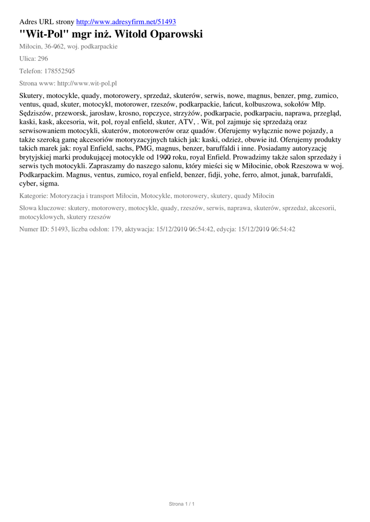 "Wit-Pol" mgr inz. Witold Oparowski, Milocin, 296