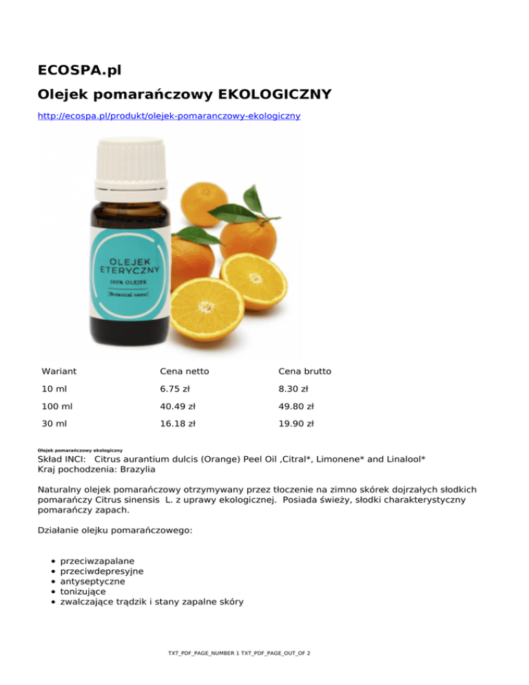 ECOSPA.pl Olejek pomarańczowy EKOLOGICZNY