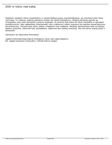 słabym poziomie. Zbiorniki były zaniedbane, właściwie bez żadnej aranżacji. Nie ma sensu więcej pisać o