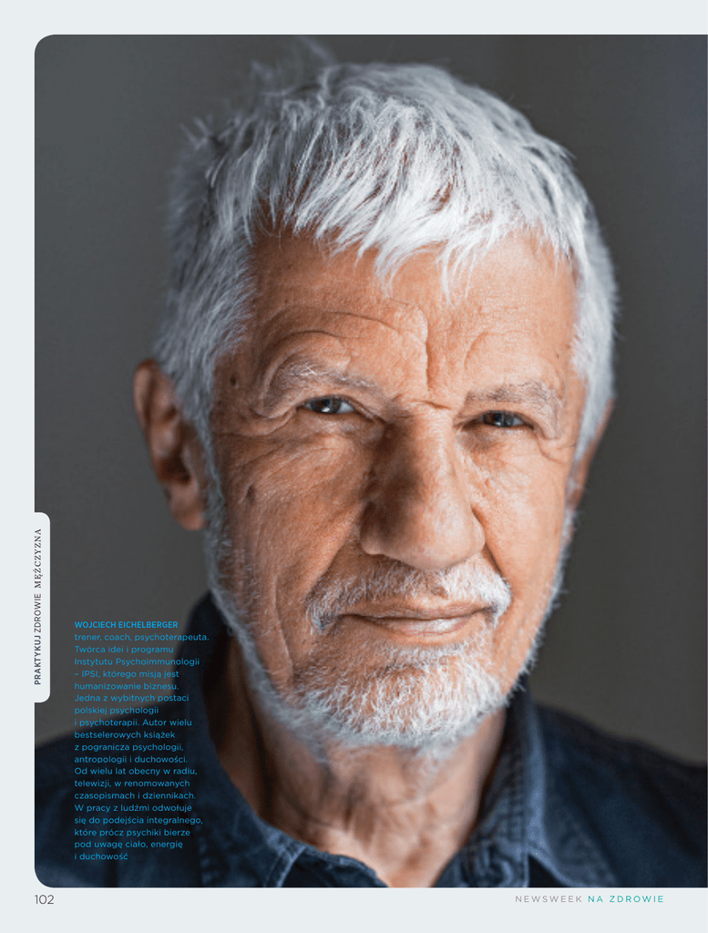 PRAKTYKUJ ZDROWIE MĘ Ż CZYZ NA 102 WOJCIECH EICHELBERGER trener, coach, psychoterapeuta. Twórca idei i programu Instytutu Psychoimmunologii – IPSI, którego misją jest humanizowanie biznesu. Jedna z wybitnych postaci polskiej psychologii i psychoterapii. Autor wielu bestselerowych książek z pogranicza psychologii, antropologii i duchowości. Od wielu lat obecny w radiu, telewizji, w renomowanych czasopismach i dziennikach. W pracy z ludźmi odwołuje się do podejścia integralnego, które prócz psychiki bierze pod uwagę ciało, energię i duchowość NEWSWEEK NA ZDROWIE NA ZDROWIE Samiec nie umie być pacjentem Chorowanie jest dla mężczyzn skrajnie upokarzające. Szczególnie w Polsce, gdzie od małego wychowywani są w kulturowym i religijnym przekazie romantyczno-męczeńskim. I większość z nich zachowuje się jak samiec w stadzie – gdy zaczyna chorować, oddala się od swoich, zamyka się w sobie, izoluje i chce umrzeć w samotności, by nikomu nie robić kłopotu, a sobie wstydu. O tym, dlaczego mężczyźni „nie chorują”, mówi psycholog i psychoterapeuta WOJCIECH EICHELBERGER ROZMAWIA ZDJĘCIE JOANNA ZAPAŁA, psycholog, psychoterapeuta z Centrum Psychoterapii Integralnej oraz wykładowca Uniwersytetu SWPS MAREK SZCZEPAŃSKI NEWSWEEK ZDROWIE: Od czego zacząłby pan rozmowę o zdrowiu mężczyzn? WOJCIECH EICHELBERGER: Może od po- straszenia. A jest czym straszyć. Bo w porównaniu ze statystyczną Polką statystyczny Polak umiera 10 lat wcześniej, 6 razy częściej popełnia samobójstwo, częściej choruje na depresję, ma większe kłopoty z rozrodczością, otyłością, cukrzycą i częściej dopada go zawał. Zatem jest się czym martwić i trzeba szukać powodów tego stanu rzeczy. To rzeczywiście mocny początek. Co, pana zdaniem, doprowadziło mężczyzn do tak dramatycznej sytuacji? – Jest ich cała macierz i trudno rozstrzygnąć, co jest najważniejsze. Jak to w macierzy, decyduje interferencja wielu czynników. NEWSWEEK NA ZDROWIE A jak to wygląda z perspektywy pańskiej praktyki? – Według mnie podstawową przyczyną jest zaburzona świadomość ciała. Przez większość moich męskich pacjentów, uczniów, studentów i uczestników szkoleń ciało jest traktowane jak maszyna, przedmiot. Najpełniej wyraża się to w hipochondrii, na którą – w różnym nasileniu – cierpi wielu mężczyzn. Kobietom przydarza się ona znacznie rzadziej. Zarodkiem hipochondrii jest właściwy wielu mężczyznom odrealniony, zdystansowany, całkowicie wyzuty z szacunku i przepojony lękiem stosunek do swojego ciała, które jest dla nich ziemią nieznaną, nieobliczalną bestią gotową w każdej chwili wyciąć jakiś straszny numer. Dlaczego mężczyźni tak traktują własne ciało? – Widocznie w ich dzieciństwie i dorastaniu brakuje doświadczeń, które pozwalają zaprzyjaźnić się z ciałem, poznać je i zrozumieć. Chłopięce ciało ma sprostać różnym zadaniom i wyzwaniom. Widać to potem w sporcie wyczynowym. Wyłącznie sportowcom mężczyznom zdarzają się nagłe śmierci w trakcie zawodów. Czy to znaczy, że mężczyźni nie zwracają uwagi na swoje ograniczenia? – Nawet ich nie czują. Świadomość ciała możemy porównać do bogatej tablicy wskaźników w samochodzie rajdowym. Taki samochód może dać z siebie wszystko, pod warunkiem że kierowca wie, co się dzieje we wszystkich układach 103 pojazdu. Tylko wtedy nie doprowadzi do awarii. To jest cienka granica, po której w dzisiejszych trudnych czasach poruszają się mężczyźni. Często muszą dawać z siebie wszystko. Jeśli tablica wskaźników nie działa, to przekraczają możliwości organizmu i zaczynają chorować. W przeciwieństwie do mężczyzn, kobiety z natury rzeczy muszą być w lepszym świadomym kontakcie ze swoim ciałem. Miesiączkują, czują hormonalne fazy cyklu, troszczą się o swoje możliwości rozrodcze, uczą się kontrolować płodność, doświadczają ciąży i porodu. Zatem ciało jest dla nich bardziej zamieszkaną przestrzenią. Poza tym sukces prokreacyjny kobiety w znacznie większym stopniu zależy od wyglądu i atrakcyjności ciała. Dlatego kobiety lepiej niż mężczyźni dbają o zdrowie. Czy mężczyźni nie dbają o swoją płodność? PRAKTYKUJ ZDROWIE MĘ Ż CZYZ NA – Obowiązujący w naszej przestrzeni kulturowej męski etos nie zna tego tematu. Rozrodczość jest dana przez naturę, a jedyną sprawą, o którą się mężczyzna powinien martwić, jest kontrola wybujałej seksualności. A jeśli problem z płodnością jest po stronie mężczyzny? – Przede wszystkim niewielu mężczyzn o tym wie. A jak się dowiadują, to zbyt późno. Ponieważ nie wiedzą o tym, że o seksualną sprawność i płodność trzeba się troszczyć, więc odkrywają problem zbyt późno. Są zdruzgotani, bo to cios w centrum ich biologiczno-kulturowego etosu. A ponieważ zanieczyszczenie środowiska nie sprzyja męskim gonadom, a jest to jedna z ważnych przyczyn spadku płodności wśród mężczyzn, wiedza o tym, jak troszczyć się o męską wydolność seksualną, staje się niezbędna. Ale to jest czynnik zewnętrzny. A za co mężczyźni sami są odpowiedzialni? – Na pierwszych miejscach długiej listy jest brak ruchu i zła dieta. Szczególnie ruch. Wiadomo, że ruch szybko i korzystnie wpływa na podniesienie poziomu męskich hormonów. Testosteron jest nie tylko napędem – również wojownika i myśliwego. Intensywny ruch męskiego 104 ciała jest informacją dla wegetatywnego mózgu, że testosteron jest potrzebny, więc jest wtedy wydzielany w większych ilościach. A żyjemy w czasach, kiedy coraz częściej pracujemy umysłowo niż fizycznie. Dlatego zanim dzieci usiądą na resztę życia przy komputerach, trzeba dostarczać im wiele pozytywnych doświadczeń określone wzorce kulturowe. Jakiemu wzorcowi poddają się polscy mężczyźni? – W polskim dziedzictwie kulturowym brakuje męskich wzorów pokazujących chłopc