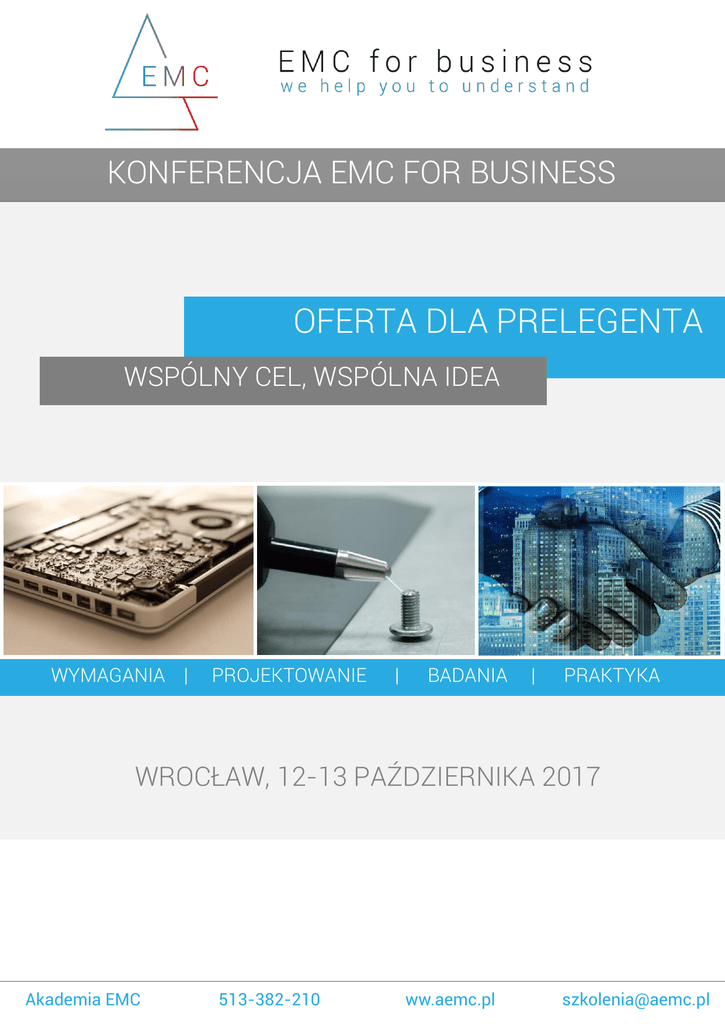 Akademia EMC KONFERENCJA EMC FOR BUSINESS OFERTA DLA PRELEGENTA WSPÓLNY CEL, WSPÓLNA IDEA WYMAGANIA | PROJEKTOWANIE | BADANIA | PRAKTYKA WROCŁAW, 12-13 PAŹDZIERNIKA 2017 Akademia EMC 513-382-210 ww.aemc.pl [email protected] PRELEGENT KONFERENCJA EMC FOR BUSINESS IDEA EMC FOR BUSINESS Największa konferencja zrzeszająca praktyków i miłośników branży EMC, którzy zaprezentują case’y dotyczące wymagań, projektowania oraz badań EMC na bazie własnych doświadczeń i rzeczywistych przypadków. Spotkanie oparte na wymianie wiedzy, dyskusjach, pomysłach i warsztatach skupiających się na przyszłości EMC. Nieocenioną wartością wydarzenia jest rozwiązywanie ciekawych przypadków przez uczestników, co przyczyni się do powstania nowych działań, poszerzy wiedzę oraz nada nowe know - how dla świata EMC. Przykładowe zagadnienia poruszane na warsztatach podczas EMC for Business: Wymagania Projektowanie Rozwiązywanie problemów Requirements Design Troubleshooting Wymagania wpływające na EMC: 1. 1. Ograniczenia: koszty, pobór energii, temperatura, i inne. 2. Dobór wymagań do nietypowych urządzeń. 3. Wykluczające się wymagania. 2. 3. 4. 5. Poznaj różne rozwiązania układowe. Różne podejścia do projektowania. Identyfikacja miejsc potencjalnych zagrożeń. Jak uniknąć błędów? Komunikacja w zespole projektowym, a efekty. 1. 2. 3. 4. 5. Namierzanie źródeł. Główne problemy. Uproszczone metody badań. Co możemy zrobić sami? Sprzęt pomiarowy i interpretacja wyników. Znajdź przyczynę występowania problemów. Konferencja jest adresowana do firm, które mają styczność z EMC, m.in. przedstawicieli branży elektronicznej, w tym osób projektujących urządzenia, sprawdzających ich zgodność, a także podejmujących decyzje strategiczne, dotyczące obszaru EMC, jak wybór dostawcy. Skupia się na realnych, praktycznych problemach i ich rozwiązywaniu. Jej celem jest przede wszystkim wymiana doświadczeń w obszarze EMC. EMC for Business 513-382-210 www.emc4b.com [email protected] KONFERENCJA EMC FOR BUSINESS PRELEGENT PRAKTYCY DLA PRAKTYKÓW EMC for Business ma mieć przede wszystkim ujęcie praktyczne. Dlatego oczekiwalibyśmy, aby prelegent w swoim wystąpieniu przedstawił i omówił rzeczywiste przypadki, problemy i wyzwania z obszaru EMC, z jakimi spotkał się bezpośrednio lub które zaistniały w reprezentowanym przez niego przedsiębiorstwie. Zależy nam na wskazaniu, jeśli to możliwe, łatwych, ale i skutecznych sposobów rozwiązań problemów, bądź jeśli są to jeszcze kwestie nierozstrzygnięte, na przedstawieniu najważniejszych znaków zapytania, które można poddać analizie i dyskusji podczas konferencji. KORZYŚCI DLA PRELEGENTA Pokazanie się w roli specjalisty z branży. Przedstawienie realnego problemu, studium przypadku, które może zostać poddane dyskusji czy analizie podczas konferencji. Wymiana doświadczeń pomiędzy specjalistami z branży. Atrakcyjne wynagrodzenie. Możliwość uczestniczenia w roli słuchacza podczas całych dwóch dni konferencji, co jest dużą korzyścią nie tylko dla prelegenta, ale także jego firmy, która nie musi pokrywać kosztu jego udziału. Szansa na zaproponowanie własnego tematu prelekcji, który jest istotny w pracy prelegenta. Publikacja artykułu w materiałach konferencyjnych. Możliwość dalszej współpracy w obszarze szkoleń realizowanych przez akademię EMC. Dużo czasu na przygotowanie się do prelekcji pod okiem i ze wsparciem organizatora. Każdy zaproponowany temat jest omawiany z Organizatorem w celu dostosowania go do potrzeb zgłaszanych przez uczestników Konferencji. Stąd, nawet jeśli potencjalny prelegent zgłasza się do nas z obszarem tematycznym lub z przybliżonym tematem prezentacji – pomagamy mu dopracować szczegóły. EMC for Business 513-382-210 www.emc4b.com [email protected] PRELEGENT KONFERENCJA EMC FOR BUSINESS MOŻLIWOŚCI WSPÓŁPRACY Z AKADEMIĄ EMC Tematyka EMC specjalistycznym. jest Wiele obszarem firm, nie tylko na terenie Polski, poszukuje możliwości dostarczenia lub poszerzenia wśród swoich pracowników Jako organizator równolegle EMC, wiedzy z tej dziedziny. EMC for Business także Akademię realizujemy będącej projektem szkoleniowym, w którym stale poszukujemy specjalistów do współpracy w roli trenerów oraz konsultantów z obszaru EMC. Wspieramy trenerów-specjalistów w przygotowaniu się do prowadzenia szkoleń, przez co mają możliwość uzyskania dodatkowego wynagrodzenia poza swoim stałym miejscem zatrudnienia, a jednocześnie rozszerzają posiadane przez siebie kompetencje. Pełnienie roli prelegenta podczas konferencji może być początkiem przyszłej współpracy pod szyldem Akademii EMC. Serdecznie do tego zachęcamy! EMC for Business 513-382-210 www.emc4b.com [email protected] PRELEGENT KONFERENCJA EMC FOR BUSINESS WARUNKI WSPÓŁPRACY PRZY KONFERENCJI Oferujemy wynagrodzenie dla Prelegenta w wysokości 1000 zł brutto. Wystąpienie ma mieć charakter 20-30-minutowej prelekcji, podczas której słuchacze dostaną szczegółowe informacje nt. przygotowanego przez Prelegenta case study. Po prelekcji nastąpi moderowana dyskusja, podczas której uczestnicy będą mogli także zadawać pytania lub zastanowimy się nad rozwiązaniem przedstawionego zagadnienia. Konferencja jest przedsięwzięciem komercyjnym. Uczestnicy mogą skorzystać zarówno z prelekcji, jak i krótkich warsztatów. Liczymy na udział ok. 150-200 osób. Prelekcja jest przygotowywana według scenariusza Organizatora, co ma ułatwić i przyspieszyć przygotowanie się Prelegenta do Konferencji oraz ujednolicić standardy przedstawianych studiów przypadku. Szczegółowe informacje na temat konferencji znajdują się na www.emc4b.com/konferencja, na którą to stronę serdecznie Państwa zapraszam. Z niecierpliwością czekam na odpowiedź z Państwa strony do 20 sierpnia 2016 r. Z poważaniem, Tomasz Utkowski [email protected] 512-537-666 EMC for