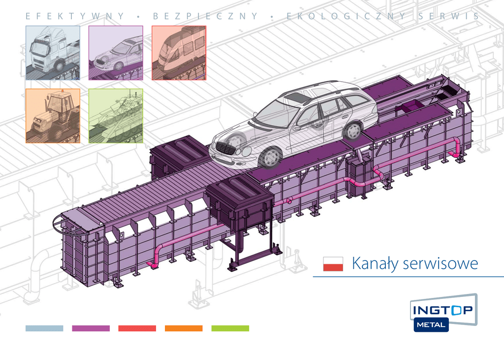 E F E K T Y W N Y • B E Z P I E C Z N Y • E K O L O G I C Z N Y S E R W I S Kanały serwisowe Wszystko od jednego dostawcy. Firma INGTOP METAL, s.r.o. projektuje, produkuje, dostarcza i montuje kanały serwisowe do następującego wykorzystania: Serwisy samochodowe – ciężarowe, osobowe, stacje kontroli technicznej pojazdów Serwisy samochodowe – osobowe i stacje kontroli technicznej pojazdów Pojazdy szynowe – (warsztaty kolejowe, serwisowanie tramwajów i metra) Warsztaty konserwacji techniki wojskowej (czołgi, transportery i pozostałe pojazdy) Warsztaty i punkty konserwacji maszyn rolniczych Kanał serwisowy bez żaluzji JBR 10 – STK – samochody osobowe OFERTA KOMPLEKSOWA – od projektu przez produkcję, dostarczenie aż po montaż Podczas przygotowywania oferty na wykonanie kanału serwisowego szczególną uwagę zwracamy na prawidłowo wykonany projekt, konstrukcję i techniczne wyposażenie kanału serwisowego, które jest zawsze dostosowywane do wymagań klienta. Dostarczane przez nas kanały serwisowe przeznaczone do kontroli technicznej samochodów osobowych w pełni spełniają wymagania stawiane w rozporządzeniu 302/2001 Ministerstwa Transportu. Kanały serwisowe posiadają certyfikat Urzędu kontroli techniczneji są zgodne z rozporządzeniem rządu nr 176/2008 oraz wytycznymi Parlamentu Europejskiego i Rady 2006/42/ES. Spełniają wymogi dotyczące ochrony zdrowia i bezpieczeństwa. Kanały serwisowe spełniają również wymogi rozporządzenia rządu nr 101/2005, gdzie w punktach 7.1. do 7.7 są wymienione wymagania dotyczące kanałów garażowych. GŁÓWNE ZALETY KANAŁÓW SERWISOWYCH KLUCZOWE ZALETY KANAŁÓW SERWISOWYCH ● Gotowy stalowy kanał garażowy – przestrzeganie dokładnych rozmiarów. ● Krótki czas produkcji – od 21 do 30 dni od zaakceptowania projektowej dokumentacji. ● Komfortowe warunki pracy (regulowane oświetlenie, roleta bezpieczeństwa, zbiorniki ciśnieniowe powietrza, wentylacja, miejsce na magazynowanie, zbiorniki do odciągania olejów). ● Bardzo łatwy montaż kanału (wszystko zainstalowane u producenta – oświetlenie, roleta bezpieczeństwa, zbiorniki ciśnieniowe powietrza, wentylacja, miejsce na magazynowanie, zbiorniki do odciągania olejów). ● Możliwość wykorzystania w niskich budynkach w porównaniu z podnośnikami teleskopowymi. ● Kanały są skonstruowane jako bezobsługowe. ● Prace serwisowe prowadzone z kanału w pojazdach mogą być w każdej chwili przerwane w porównaniu z pracami wykonywanymi na podnośnikach teleskopowych. ● Kanał serwisowy umożliwia pracę jednocześnie pod pojazdem jak i na jego górnej części. ● Wszelkiego rodzaju diagnostyka może być częścią kanału serwisowego. ● Wyższa produktywność pracownika technicznego. ● Oszczędności instalacyjne – czas – skrócenie i przyspieszenie budowy. ● Wyższa skuteczność serwisu – przy pojeździe może równocześnie pracować kilku pracowników technicznych (automechanik + elektryk itp.). ● Lepsze warunki pracy (wnęki na narzędzia, zamykane szafki, zbiorniki do odciągania olejów do olejowych rynien). ● Zwiększone bezpieczeństwo – zgodnie z wymaganiami rządu nr 101/2005. ● Wodoszczelne - ekologiczne. ● Dokładność prefabrykowanego kanału do instalacji urządzeń diagnostycznych. Podstawowe wyposażenie kanału serwisowego Opis techniczny POWIETRZE ROZMIARY KANAŁU ● dopływ świeżego powietrza (DN100) zgodnie z ČSN 73 6059 – 3 ● kanałowa pompa do odprowadzania brudów z kanału serwisowego szerokość 1,3 m jakość materiału wysokość 1,5 m profil INSTALACJA POWIETRZA SPRĘŻONEGO ● 2 włącznika + rozrząd OSIOWA PRZYSTAWKA DETEKTORU WOLI ● osiowa przystawka służy do ułożenia technologi nastawiania geometrii kół. Osiowa przystawka kanału serwisowego jest wykonana ze stalowych blach i profili. Do osiowej przystawki kanału serwisowego są doprowadzone wejścia do elektroinstalacji oraz w celu odprowadzania cieczy. ELEKTROINSTALACJA ● ● ● ● ● ● ● oświetlenie – 4 szt obrotowych lamp gniazdko elektryczne – 2 szt 230 V kable wyłączniki – 2 szt instalacja rewizja i dokumentacja elektryki tablica rozdzielcza MATERIAŁOWY SKŁAD SZKIELETU długość 8 m szkielet blacha grubość podziałka między profilami U140 850 mm masa całkowita z osiowymi kasetami obciążenie od osi 4 x 2500 kg (bez podłogowych stelaży, szerokość 990 mm) obciążenie od podnośnika na rolkę 4 x 1000 kg S235 U 140 3 mm 2.966 kg S C H E M AT D O S TAW Y 3 8 d n i 1. zapytanie/oferta 0 dni 2. projekt 7 dni 3. produkcja * 21-30 dni 4. dostarczenie 1 dzień 5. montaż – usadowienie 1 dzień POZOSTAŁE WYPOSAŻENIE ● ● ● ● ● schody 7 stopni schodowych, długość 1,5 m – 1 szt (wysokość stopnia schodowego 188 mm) drabina 1 szt (strona wjazdowa) podłogowe stelaże ze zbiornikiem izolacja grubość 20 mm STYRODUR jasnoniebieska farba podstawowa i zewnętrzna (wewnętrzna farba RAL 7035a, wewnętrzna farba inertol Sika poxitar F - odcień 9017) OPAKOWANIE ● drewniane skrzynki ● częściowe pokrycie drewnem ● okrycie folią POZOSTAŁE ● ● ● ● dokumentacja niezbędna na uzyskanie zgody budowlanej współpraca z projektantem budowy wysyłka kanału nadzór przed wybetonowaniem w okręgu 100 km od Týniště n. O. (ważny warunek przy zachowaniu gwarancji) 6. betonowanie, twardnienie 7. przekazanie 7 dni 1 dzień * – w zależności od długości i skomplikowania kanału serwisowego Hradec Králové Praha Týniště nad Orlicí INGTOP METAL, s.r.o., Nádražní 151, CZ - 517 21 Týniště nad Orlicí, Czech Republic GPS: ZŠ 50°9’9.33”N / ZD 16°4’30.57”E cell phone: +420 606 678 320, fax: +420 494 530 227 ver. 2.01-092012 e-mail: [email protected] www.servicepits.com