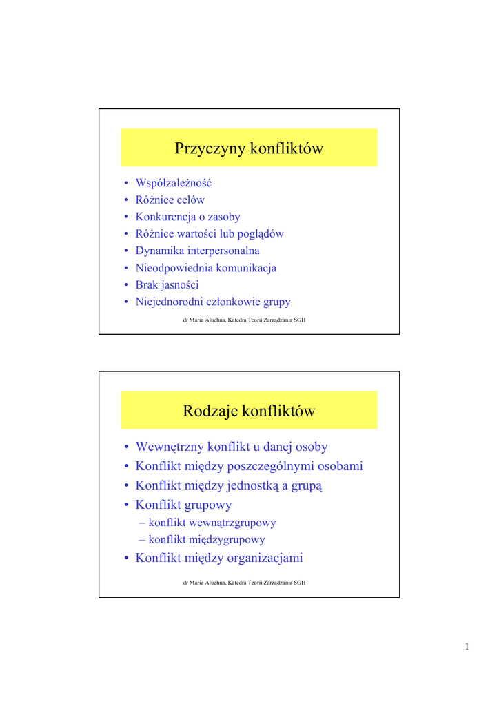 Przyczyny konfliktów Rodzaje konfliktów - E-SGH