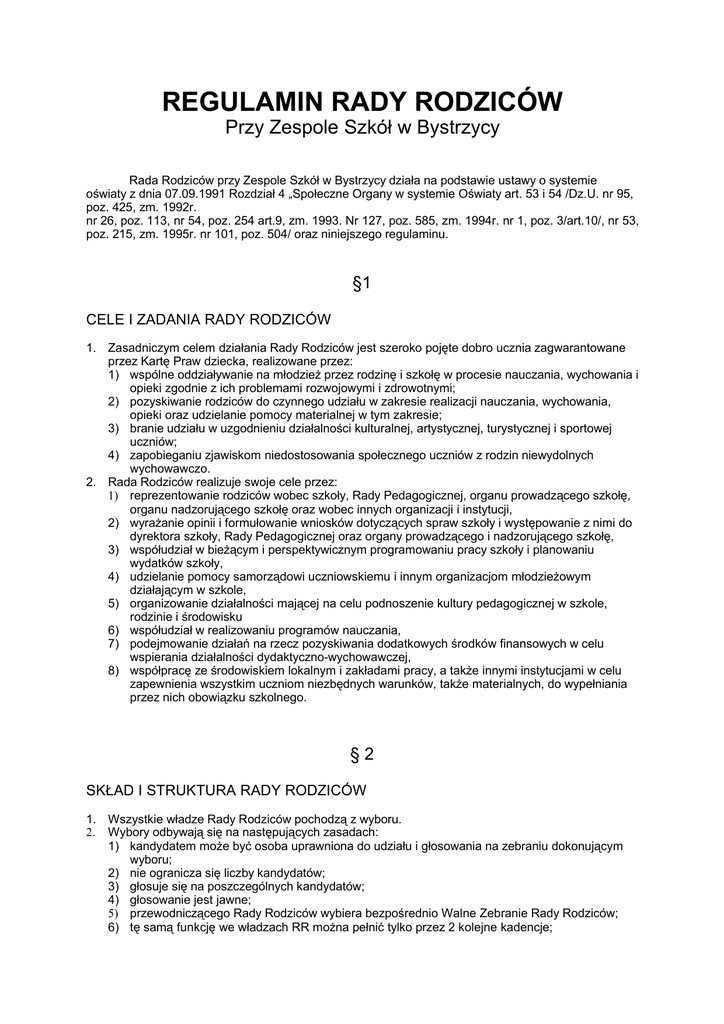 Reg. Rady Rodziców - Zespół Szkół w Bystrzycy