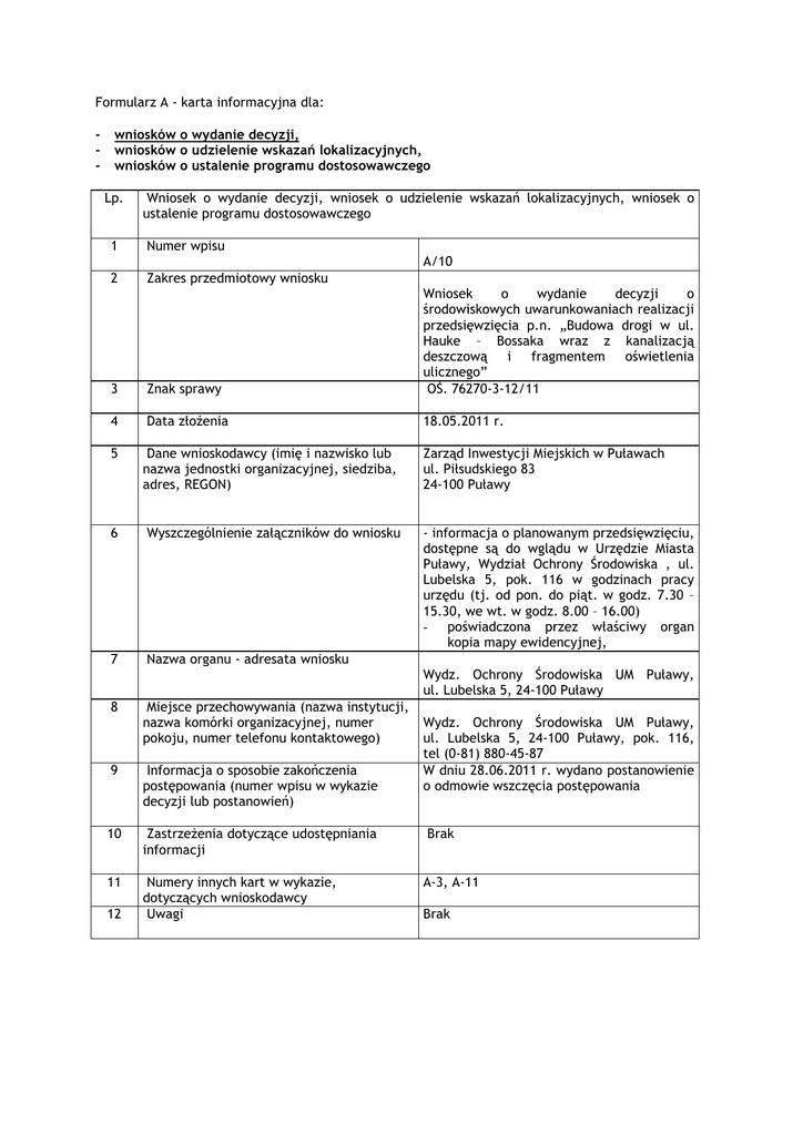 Formularz A10 - Urząd Miasta Puławy