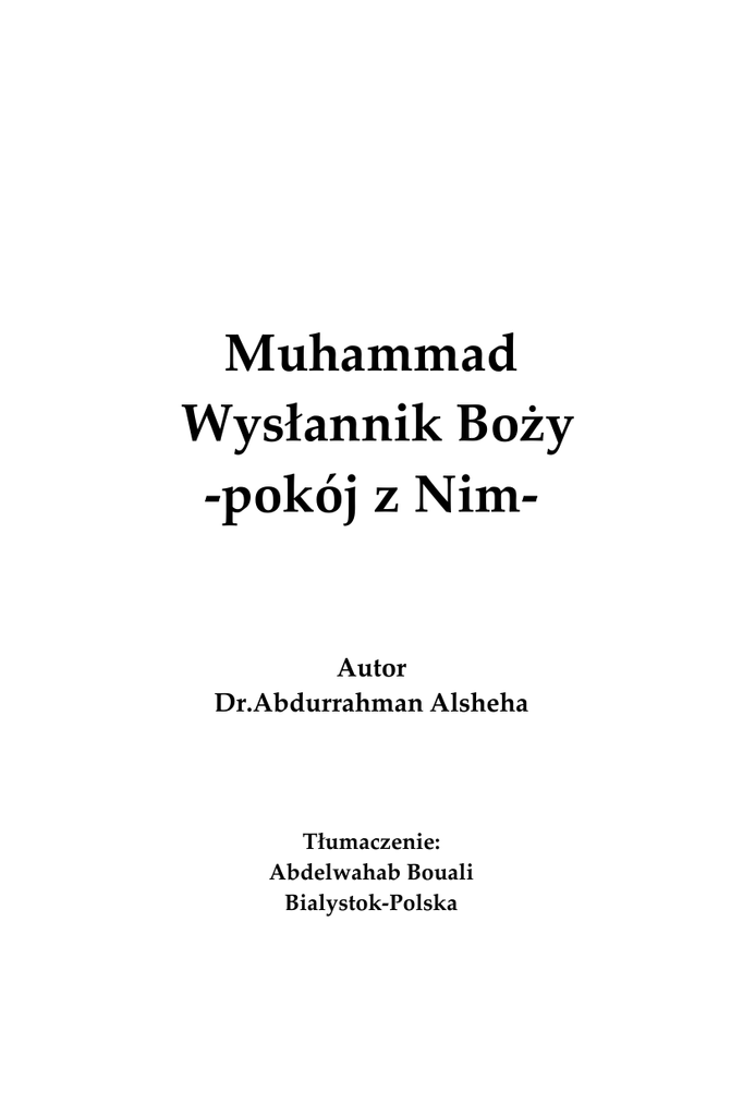 Muhammad Wysłannik Boży -pokój z NimAutor Dr.Abdurrahman Alsheha Tłumaczenie: Abdelwahab Bouali Bialystok-Polska Muhammad Wysłannik Boży pokój z Nim SPIS TREŚCI: 1. 2. 3. 4. 5. 6. 7. 8. 9. 10. 11. 12. 13. Terminologia użyta w książce. Wprowadzenie. Rodowód wysłannika Muhammada () Miejsce urodzenia i dzieciństwo Muhammada() Charakterystyka proroka Muhammada() Zwyczaje moralne i cechy charakteru Proroka() Wybrane cechy etyki Proroka() Bezstronne świadectwa niektórych światłych ludzi Zachodu Żony Wysłannika () Wybrane dowody na posłannictwo Muhammada() Wybrane argumenty rozumowe potwierdzające prawdziwość posłannictwa i proroctwa Muhammada (). Do czego zobowiązuje nas oświadczenie, że Muhammad () jest wysłannikiem Boga? Podsumowanie ___________________________________________________ 2 Muhammad Wysłannik Boży pokój z Nim Terminologia użyta w książce. Muzułmanie, kiedy wspominają Allaha () oraz Wysłannika Muhammada () i wszystkich Wysłanników (), a także Aniołów () i towarzyszy Wysłannika Muhammada () wypowiadają specjalne słowa okazując im w ten sposób wielki szacunek. Książka ta w swojej treści zawiera arabskie zwroty, których znaczenia są następujące: ALLAH: Subhaanahu wa ta´ala- Chwała Jemu i Wyniosłość. U U Wysłannik Muhammad: salla-llahu ´alaihi wa salamPokój i błogosławieństwo Allaha niech będą z nim. U U Aniołowie i Wysłannicy: ´alaihim salaam- Pokój z U U nimi. رب Towarzysz Wysłannika Muhammada: radia-llahu ´anhu- Niech Allah będzie zadowolony z niego. U U Towarzysze Wysłannika Muhammada: radia-llahu ´anhum- Niech Allah będzie zadowolony z nich. U U (Rabb) Zamiast tego słowa , które oznacza Bóg, niektórzy 1T wolą używać słowa Pan, ponieważ pierwsze słowo(Bóg) pochodzi z Ewangelii i określa się nim również Mesjasza zaś słowo Pan tłumaczy się jako przywódca, sędzia, król jednak nie oddają one pełnego znaczenia słowa Bóg. 1T ___________________________________________________ 3 Muhammad Wysłannik Boży pokój z Nim Słowo 'Rabb' natomiast oznacza: Stwórca, Jedyny Żywiciel, jedynie On utrzymuje stworzenia przy życiu i On sam decyduje o ich poczęciu i śmierci. ( دﻳﻦDiin) Słowo to tłumaczone jest jako wiara, jednak w języku arabskim oznacza ono ukierunkowanie stylu życia prywatnego i społecznego i określa wszystkie formy czczenia Boga oraz życie polityczne, a także szczegółowe prawa i ogólne zasady postępowania tak jak czystość, moralność i inne sprawy dotyczące ogólnego życia. ___________________________________________________ 4 Muhammad Wysłannik Boży pokój z Nim l W imię Boga Miłosiernego, Litościwego Chwała Allahowi Bogu światów oraz pokój i błogosławieństwo niechaj będą z prorokiem Muhammadem, z Jego rodziną i z wszystkimi Jego towarzyszami Wprowadzenie: Kiedy mówimy o wysłanniku Muhammadzie () to mówimy o największej doskonałej ludzkiej postaci wszechczasów. Kto pozostawi na bok religijny fanatyzm i osobiste upodobania i zacznie studiować historię życia Proroka () zapoznając się z jego moralnym zachowaniem i szlachetnymi cechami charakteru Wysłannika () ten z pewnością zaświadczy o jego wielkiej i doskonałej osobowości. Niektórzy sprawiedliwi i uczciwi nie-muzułmanie także świadczą o tym. Nieżyjący profesor Hasan Ali, niech Allah będzie dla niego litościwy, powiedział w swoim czasopiśmie „Noor al-Islam”, że jego kolega Brahmin 1 stwierdził pewnego razu: „Uznaje i wierze, że Wysłannik islamu jest największym i najbardziej rozwiniętym człowiekiem w historii.” Profesor Hasan Ali, zapytał go: „Dlaczego uważasz Go za takiego człowieka?” Brahmin odpowiedział: „Żaden z ludzi nie posiadał jednocześnie takiego charakteru, sposobu zachowania się, 1 Brahmin: członek najwyższej z czterech hinduskich kast; kasta kapłańska. ___________________________________________________ 5 Muhammad Wysłannik Boży pokój z Nim manier i zasad moralnych takich, jakie on posiadał. Był on królem, który zjednoczył całą Zatokę, jednocześnie będąc skromnym i pokornym. Wierzył, że wszelka władza należy tylko do Boga.” Wielkie bogactwa mogły należeć do Wysłannika (), ale on jednak żył bardzo skromnie i biednie, czasami pozostawał głodny, a w jego domu ogień nie był rozpalany nawet przez kilka dni. Był on wielkim przywódcą; kierował np. małą grupą w bitwie przeciwko tysiącom i zdecydowanie pokonywał ich. Kochał pokój i pokojowe rozejmy, pomimo, że miał mnóstwo odważnych i walecznych towarzyszy po swojej stronie. Każdy z nich był gotów stawiać czoła tysiącom nieprzyjaciół bez najmniejszego poczucia strachu. Prorok był jednak człowiekiem o dobrym sercu, miłosiernym i nie chciał niepotrzebnego rozlewu krwi. Bardzo troszczył się o sprawy Półwyspu Arabskiego, jednocześnie nie zaniedbując swojej rodziny, domostwa, biednych i wszystkich, którzy byli w potrzebie. Był gorliwy w nawoływaniu do islamu tych, którzy zapominali o swoim Stwórcy i zbaczali z drogi prostej. Generalnie był on człowiekiem, któremu zależało na polepszeniu, doskonaleniu i ogólnemu dobrobycie ludzkości, jednocześnie sam nie pozwalał sobie na bogactwo i przyjemności. Zajmował się czczeniem Boga i uwielbiał czynić rzeczy, które zadawalają Stwórcę. Nigdy nie był zawistny i mściwy z powodów osobistych. Nawet modlił się o dobro dla swoich nieprzyjaciół i przestrzegał ich przed karą Bożą. Jeżeli chodzi o sprawy materialne i przyziemne był bardzo wstrzemięźliwy i modlił się często przez całą noc. Był bardzo odważnym i mężnym żołnierzem, niezawodnym Prorokiem, który zdobył narody i państwa. Sypiał na macie z siana i poduszce wypełnionej ostrymi, suchymi włóknami. Pomimo, ___________________________________________________ 6 Muhammad Wysłannik Boży pokój z Nim że ludzie okrzyknęli go przywódcą Arabów, królem Półwyspu Arabskiego i 