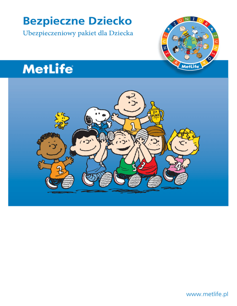 Bezpieczne Dziecko Ubezpieczeniowy pakiet dla Dziecka www.metlife.pl SPIS TREŚCI Karta Produktu 4 Ogólne Warunki Ubezpieczenia 12 Umowa podstawowa – Terminowe ubezpieczenie na życie w pakiecie dla Dziecka 13 ROZDZIAŁ I. POSTANOWIENIA OGÓLNE 13 Artykuł 1. Wstęp Artykuł 2. Definicje 13 13 ROZDZIAŁ II. OCHRONA UBEZPIECZENIOWA I JEJ ZAKRES 13 Artykuł 3. Przedmiot i zakres ubezpieczenia 13 ROZDZIAŁ III. UMOWA UBEZPIECZENIA 14 Artykuł 4. Zawarcie Umowy i początek odpowiedzialności Towarzystwa Artykuł 5. Zmiana Umowy na wniosek Ubezpieczającego Artykuł 6. Prawa i obowiązki Ubezpieczającego wynikające z Umowy Artykuł 7. Duplikat Szczegółowej Umowy Ubezpieczenia 14 14 14 14 ROZDZIAŁ IV. SKŁADKA 14 Artykuł 8. Opłacanie składek 14 ROZDZIAŁ V. WYPŁATA ŚWIADCZENIA I UPOSAŻONY 14 Artykuł 9. Zgłoszenie roszczenia i wypłata świadczenia z tytułu zdarzenia ubezpieczeniowego Artykuł 10. Wskazanie i zmiana Uposażonego 14 15 ROZDZIAŁ VI. OGRANICZENIA ODPOWIEDZIALNOŚCI TOWARZYSTWA 15 Artykuł 11. Zatajenie informacji Artykuł 12. Ryzyko wojenne 15 15 ROZDZIAŁ VII. WYGAŚNIĘCIE UMOWY 15 Artykuł 13. Odstąpienie od Umowy Artykuł 14. Rozwiązanie Umowy Artykuł 15. Wygaśnięcie Umowy 15 16 16 ROZDZIAŁ VIII. POSTANOWIENIA KOŃCOWE 16 Artykuł 16. Postanowienia kolizyjne Artykuł 17. Należności, opłaty, podatki Artykuł 18. Doręczenia Artykuł 19. Prawo właściwe, właściwość sądów i rozpatrywanie skarg Artykuł 20. Aktualizacja informacji Artykuł 21. Pełnomocnictwa 16 16 16 16 16 16 Umowa dodatkowa – Ubezpieczenie Dziecka od następstw NW lub choroby 17 ROZDZIAŁ I. POSTANOWIENIA OGÓLNE 17 Artykuł 1. Wstęp Artykuł 2. Definicje 17 17 ROZDZIAŁ II. OCHRONA UBEZPIECZENIOWA I JEJ ZAKRES 17 Artykuł 3. Przedmiot ubezpieczenia Artykuł 4. Zakres ochrony 17 18 ROZDZIAŁ III. POCZĄTEK ODPOWIEDZIALNOŚCI TOWARZYSTWA 21 Artykuł 5. Początek odpowiedzialności Towarzystwa 21 ROZDZIAŁ IV. WYPŁATA ŚWIADCZENIA 21 Artykuł 6. Zgłoszenie roszczenia i wypłata świadczenia z tytułu zdarzenia ubezpieczeniowego Artykuł 7. Badanie lekarskie 21 22 ROZDZIAŁ V. OGRANICZENIA ODPOWIEDZIALNOŚCI TOWARZYSTWA 22 Artykuł 8. Ograniczenia odpowiedzialności Towarzystwa 22 ROZDZIAŁ VI. WYGAŚNIĘCIE UMOWY DODATKOWEJ 23 Artykuł 9. Wygaśnięcie umowy dodatkowej 23 ROZDZIAŁ VII. DODATKOWE KORZYŚCI WYNIKAJĄCE Z UMOWY 23 Artykuł 10. Świadczenie za kontynuację ubezpieczenia 23 Tabela Inwalidztwa 24 Tabela operacji i zabiegów chirurgicznych 25 Tabela złamań i oparzeń 27 Umowa dodatkowa – Ubezpieczenie na wypadek śmierci lub całkowitego i trwałego inwalidztwa NW Ubezpieczającego w pakiecie dla Dziecka 28 ROZDZIAŁ I. POSTANOWIENIA OGÓLNE 28 Artykuł 1. Wstęp Artykuł 2. Definicje 28 28 ROZDZIAŁ II. OCHRONA UBEZPIECZENIOWA I JEJ ZAKRES 28 Artykuł 3. Przedmiot ubezpieczenia Artykuł 4. Zakres ochrony 28 28 ROZDZIAŁ III. POCZĄTEK ODPOWIEDZIALNOŚCI TOWARZYSTWA 29 Artykuł 5. Początek odpowiedzialności Towarzystwa 29 ROZDZIAŁ IV. WYPŁATA ŚWIADCZENIA 29 Artykuł 6. Zgłoszenie roszczenia i wypłata świadczenia z tytułu zdarzenia ubezpieczeniowego Artykuł 7. Badanie lekarskie Artykuł 8. Warunki wypłaty świadczenia 29 29 29 ROZDZIAŁ V. OGRANICZENIA ODPOWIEDZIALNOŚCI TOWARZYSTWA 30 Artykuł 9. Ograniczenia odpowiedzialności Towarzystwa 30 ROZDZIAŁ VI. WYGAŚNIĘCIE UMOWY DODATKOWEJ 30 Artykuł 10. Wygaśnięcie umowy dodatkowej 30 Tabela całkowitego i trwałego inwalidztwa NW 31 Warunki Ubezpieczenia „Powypadkowy Pakiet Medyczny” 32 Karta Produktu Bezpieczne Dziecko W Karcie Produktu zawarte są najważniejsze informacje o ubezpieczeniu Ubezpieczeniowy pakiet dla Dziecka „Bezpieczne Dziecko”. Karta Produktu nie jest częścią umowy ubezpieczenia, nie stanowi wzorca umownego ani materiału marketingowego. Karta Produktu została przygotowana przez MetLife Towarzystwo Ubezpieczeń na Życie i Reasekuracji S.A. z siedzibą w Warszawie na podstawie Wytycznych dla zakładów ubezpieczeń dotyczących dystrybucji ubezpieczeń wydanych przez Komisję Nadzoru Finansowego i ma za zadanie pokazać kluczowe informacje o produkcie oraz pomóc klientowi w zrozumieniu cech produktu. Decyzję o zawarciu umowy ubezpieczenia należy podjąć po wcześniejszym zapoznaniu się z dokumentacją ubezpieczeniową, zwłaszcza z Ogólnymi Warunkami Ubezpieczenia (OWU), w których znajdują się szczegółowe informacje o ubezpieczeniu. Pojęcia pisane dużą literą mają znaczenie określone w OWU. Jeśli cechy produktu zawarte w niniejszej Karcie są niezrozumiałe lub dopasowanie produktu do potrzeb budzi wątpliwość, warto skorzystać z usług pośrednika ubezpieczeniowego przed zawarciem umowy ubezpieczenia (Umowa). PODSTAWOWE DANE DOTYCZĄCE UBEZPIECZENIA 1. Ubezpieczony Osoba, której życie i zdrowie jest chronione. Ochroną ubezpieczeniową w ramach umowy podstawowej oraz umowy dodatkowej Ubezpieczenie Dziecka od następstw NW lub choroby zostaje objęty Ubezpieczony, który w dacie zawarcia Umowy nie ukończył 16 roku życia. Dodatkowo opcjonalnie w ramach umowy dodatkowej Ubezpieczenie na wypadek śmierci lub całkowitego i trwałego inwalidztwa NW Ubezpieczającego w pakiecie dla Dziecka objęty może zostać ochroną także Ubezpieczający, który w dacie zawarcia umowy dodatkowej ukończył 18 rok życia, a nie ukończył 71 roku życia. 2. Ubezpieczający Ubezpieczającym w umowie ubezpieczenia może być osoba fizyczna, osoba prawna lub jednostka organizacyjna nieposiadająca osobowości prawnej, która zawiera z Towarzystwem Umowę. 3. Towarzystwo MetLife Towarzystwo Ubezpieczeń na Życie i Reasekuracji S.A. z siedzibą w Warszawie. 4. Typ i charakter umowy ubezpieczenia Indywidualna umowa ubezpieczenia o charakterze ochronnym. 5. Zakres ubezpieczenia 1. Ochroną ubezpieczeniową jest objęty Ubezpieczony w zakresie: – śmierci, – trwałego inwalidztwa wskutek NW (nieszczęśliwego wypadku), – zdiagnozowania groźnej choroby; groźn