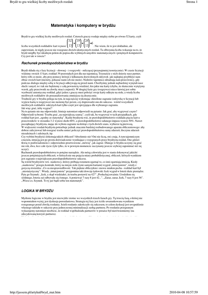 (Bryd\277 to gra wielkiej liczby mo\277liwych rozda\361)