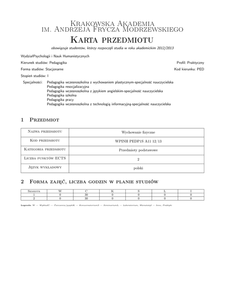 Karta przedmiotu - Krakowska Akademia im Andrzeja Frycza