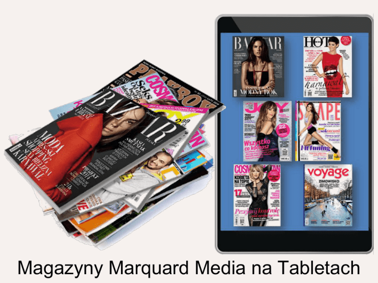 Magazyny Marquard Media na Tabletach Formaty reklam o Fullscreen/Multifullscreen o Link www o Link do FB o Link do sklepu o Reklama audio-video o Slide show (pion lub poziom) o Niestandardy Fullscreen/Multifullscreen (2 lub 3 odsłony) Reklama może zawierać: 1. link prowadzący do strony WWW, FB, Sklepu 2. film wideo, 3. galerię zdjęć Linkowanie do WWW www.cosmopolitan.pl Linkowanie do FB Reklama audio-video Spot reklamowy, film może być wyświetlany w oddzielnym oknie lub w oknie reklamy Film, spot reklamowy może być uruchomiony po kliknięciu lub automatycznie. Slide show – Galeria (pion lub poziom) Specyfikacja techniczna REKLAMA akceptujemy plik: png lub jpg, RGB 2048×1536 pikseli (aplikacja pozioma) pliki png lub jpg RGB 1536×2048 pikseli (aplikacja pionowa) LINK URL Link do strony WWW, FB, Sklepu zadziała wówczas gdy urządzenie użytkownika (tablet) będzie podłączony do internetu. Nie modyfikujemy otrzymanych linków, link powinien być sprawdzony. FILM może być wyświetlany w oknie reklamy lub w oddzielnym oknie. Akceptujemy film w formacie MP4 (codek h.264 i dźwięk AAC lub MPEG-4 AAC), maksymalny czas filmu to: 30 sek., maksymalna waga filmu to: 30 MB. W przypadku gdy będzie to więcej niż jeden film, maksymalna waga wszystkich filmów ma wynosić nie więcej niż 30 MB. GALERIA W galerii możemy zamieścić maksymalnie 5 produktów: - produkty mogą być ukryte w reklamie i otwierane po kliknięciu - produkty mogą być aktywowane z opcją powiększania i przesuwania - produkty mogą zawierać opisy (maksymalnie 500 znaków tekstu) do jednego produktu. Pokaz slajdów lub ramka przewijalna: - ramka może zawierać do 5 produktów z opisami do 500 znaków tekstu do każdego produktu; - ramka wysuwana spoza reklamy może mieć powierzchnię do 200% szerokości lub wysokości reklamy. Należy dostarczyć pliki png lub jpg 768x1024 pikseli oraz opisy w pliku tekstowym. Materiały przyjmujemy przygotowane w programie Adobe InDesign ver. 5.0 Na Tabletach dostępne są wyłącznie tytuły: Cosmopolitan, Joy, Hot Moda, Harper’s Bazaar, Shape, Voyage Uwaga! Magazyny publikowane są w wersji pionowej. Wydawca zastrzega prawo akceptacji długości/wagi plików. Treści wideo o większych rozmiarach niż 30 MB muszą być konsultowane z działem reklamy. Cennik TABLETY Reklama wyłącznie na Tablecie: Koszt mediowy: Fullscreen + link lub video lub galeria koszt techniczny 2 000 PLN 1 000 PLN 500 PLN Koszt mediowy: Multifullscreen (2 lub 3 screeny) + link lub video lub galeria koszt techniczny 3 000 PLN 1 000 PLN 500 PLN Reklama wykupiona w magazynie wzbogacona: Koszt mediowy: - link lub video lub galeria 1 000 PLN koszt techniczny 500 PLN Inne niestandardowe formy reklamy – wycena indywidualna Uwaga! Ceny stałe - nie podlegają rabatom. Cenny nie zawierają podatku 23% VAT