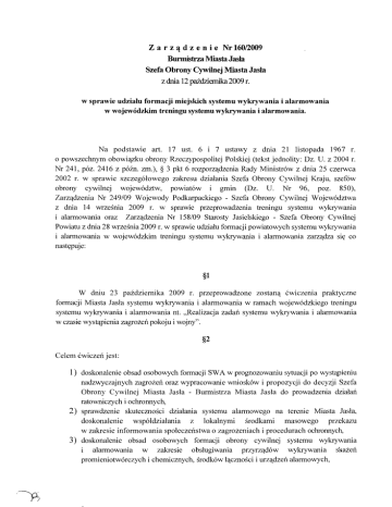 Z arz ą d zen i e Nr 160/2009 Bunnistrza Miasta Jasła Szefa Obrony