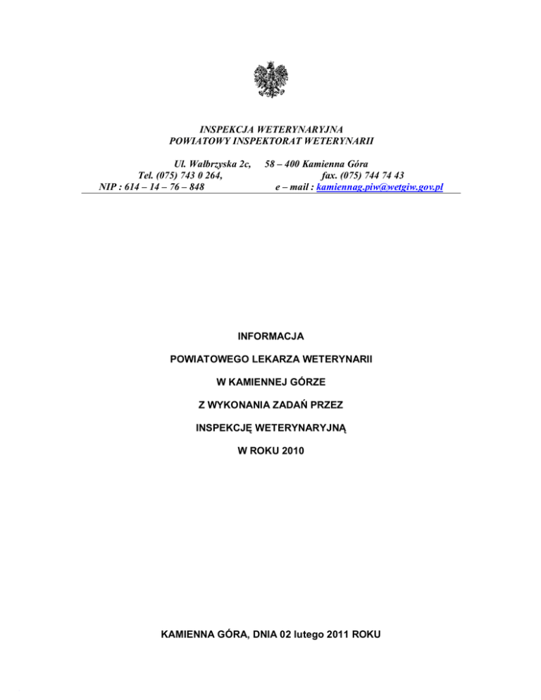 INSPEKCJA WETERYNARYJNA POWIATOWY INSPEKTORAT