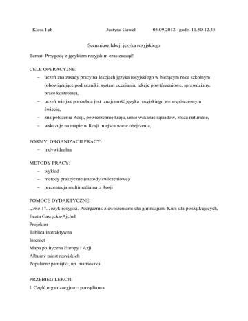 Scenariusz lekcji z języka rosyjskiego dla I gimnazjum