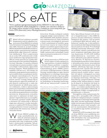 NARZĘDZIA LPS eATE Nowy pakiet oprogramowania firmy ERDAS to nie tylko program IMAGINE 2010 (GEODETA 1/2010). Już wkrótce dołączy do niego także moduł eATE będący kolejnym rozwinięciem pakietu LPS (dawniej Leica Photogrammetry Suite). Rafał Dąbrowski E RDAS LPS jest pakietem narzędzi fotogrametrycznych rozbudowywanym przez firmę ERDAS (wcześniej Leica Geosystems Geospatial Imaging) od roku 2004. Powstał on na bazie modułu ERDAS IMAGINE OrthoBASE umożliwiającego niezbyt zaawansowaną aerotriangulację bloku zdjęć lotniczych i zobrazowań satelitarnych. Wraz z pojawieniem się na rynku LPS systematycznie zwiększano możliwości tego oprogramowania. Obecna wersja pozwala na wysoką automatyzację procesów produkcji fotogrametrycznej, włączając w to pomiar orientacji wewnętrznej czy pomiar punktów wiążących dzięki wykorzystaniu algorytmów korelacji obrazów. Wśród dodatkowych modułów LPS jest m.in. ATE służący do automatycznego generowania numerycznych modeli terenu na podstawie korelacji obrazów stereoskopowych. Oczywiście, NMT wygenerowany w ten sposób prawie zawsze wymaga dalszej edycji, stąd producent zapewnił możliwość zapisu danych wyjściowych w wielu różnych formatach: od ASCII przez rastrowe i wektorowe, a także w opracowanym przez Leica Geosystems rozszerzeniu LTF (Leica Terrain Format) charakteryzującym się możliwością generalizacji wyświetlanej treści (tj. dynamicznym wyświetlaniem treści w zależności od skali wizualizacji i zapotrzebowania na szczegóły). W starszych wersjach model zapisany w formacie LTF można było w dalszym etapie prac edytować w trybie stereoskopowym w module LPS TE (Terrain Editor) i na jego podstawie tworzyć numeryczny model terenu lub numeryczny model powierzchni terenu. W firmie ERDAS podjęto decyzję o przebudowaniu modułu do automatycznego generowania modeli wysokości. Głównym powodem była chęć zwiększenia wydajności i użyteczności narzędzia. Tak powstał LPS eATE (od Enhanced Terrain 50 MAGAZYN geoinformacYJNY nr 4 (179) kwiecień 2010 Extraction). Wysoką wydajność modułu osiągnięto dzięki wprowadzonej w ERDAS IMAGINE 2010 obsłudze procesorów wielordzeniowych, która umożliwia wykonywanie równoległych procesów w ilości uzależnionej od zasobów sprzętowych (tym więcej, im więcej rdzeni). Drugim czynnikiem poprawiającym produktywność jest możliwość przetwarzania procesów w klasterze komputerów dzięki zastosowaniu technologii Condor opracowanej przez naukowców z Uniwersytetu Wisconsin. K olejną innowacją w eATE jest możliwość zapisu wyniku automatycznego pomiaru wysokości obiektów w formie chmury punktów w popularnym formacie LAS. Jest on standardem wprowadzonym przez ASPRS (American Society of Photogrammetry & Remote Sensing) umożliwiającym zapis danych pochodzących ze skaningu laserowego. W zależności od wersji w tego typu pliku znajdują się nie tylko informacje o położeniu punktu, ale także dodatkowe parametry pochodzące ze skaningu laserowego, takie jak np. intensywność i numer od- Wizualizacja chmury punktów w formacie LAS wygenerowanej na podstawie automatycznej korelacji stereopary zdjęć lotniczych bicia. Specyfikacja formatu LAS od wersji 1.2 (zaaprobowanej w roku 2008) dopuszcza również informację o kolorach dostępnych dla chmury, czyli po prostu o wartościach RGB, którymi należy „pokolorować” punkty, np. w celu realistycznej wizualizacji ułatwiającej interpretację danych podczas ich edycji. W technologii skaningu laserowego informacja o kolorze punktów chmury pozyskiwana jest przez urządzenie rejestrujące obraz podczas skanowania. W LPS eATE źródłem takiej informacji są – oczywiście – wartości radiometryczne pikseli korelowanych obrazów. W dotychczas stosowanych formatach przechowywania danych o ukształtowaniu terenu, przynajmniej w środowisku oferowanym przez firmę ERDAS, informacje tego typu nie były wykorzystywane. Format LAS otworzył zupełnie nowe możliwości generowania numerycznych modeli terenu i sposobów ich edycji w dostępnych na rynku narzędziach do opracowywania danych ze skaningu laserowego, wliczając w to klasyfikację i przeprowadzanie różnego rodzaju analiz. Jedyną różnicą w stosunku do danych ze skanerów jest brak informacji o numerze odbicia wiązki laserowej – w to miejsce producent być może wprowadzi w przyszłości informację, na ilu zdjęciach w bloku wystąpił punkt reprezentowany w chmurze. Niewątpliwą zaletą zastosowania formatu LAS w przypadku LPS eATE jest możliwość integracji danych z autokorelacji z danymi ze skaningu lotniczego lub, idąc dalej, również naziemnego. Ponadto dzięki otwartej specyfikacji jest to format obsługiwany przez wiele narzędzi i nie jest on rozszerzeniem własnościowym, co umożliwia jego bardzo szerokie wykorzystanie. Moduł LPS eATE ma pojawić się w ofercie firmy ERDAS wraz z publikacją wersji 2010.1, czyli wiosną tego roku. Starszy LPS ATE będzie więc rozwiązaniem powoli wypieranym z rynku. Rafał Dąbrowski (Geosystems Polska Sp. z o.o.)