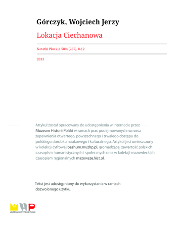 WOJCIECH JERZY GÓRCZYK LOKACJA CIECHANOWA Abstrakt Na wzgórzu farnym znajdow ał się gród kasztelański. Gród funkcjonow ał już w XI w .1 Pierwszy kasztelan ciechanowski jest poświadczony przez dokument, w którym książę Siemowit I nadaje biskupowi płockiemu wieś Proszkowo z 1 254 r.2, jest nim Rathiborius. Z XIV w. pochodzi pierwsza w zm ianka o p a ra fii ciechanow skiej. Kościół p a ra fia ln y został wzniesiony na wzgórzu farnym w pobliżu grodu kasztelańskiego. Był to kościół drewniany a od XVI w., murowany (Pseudobazylika). W połowie XIV w. Ciechanów otrzymał prawo targu a w roku 1400 prawa miejskie. Słowa kluczowe: Ciechanów, prawa miejskie, prawo chełmińskie, prawo targu 1. Poglądy na lokację Ciechanowa z poł. XIV w. U podnóża wzgórza farnego znajdow ała się osada, dla której gród kasztelański zapewne pełnił funkcję refugialną. Pewnym problemem jest ustalenie, kiedy Cie chanów otrzymał prawa miejskie3. Właściwie do połow y XX wieku wszyscy historycy byli zgodni, że prawa miejskie otrzymał w roku 1400, można tutaj wspomnieć choćby o Marianie Gumowskim4. W II połowie XX wieku pojawiła się hipoteza, ja koby owe prawa m ógł otrzymać wcześniej. Jed nymi z pierwszych historyków, którzy podnieśli taką hipotezę, w formie popularnonaukowej, byli Józef Kazimierski i Stanisław Pazyra. J. Kazimier ski w artykule opublikowanym w 1965 r.5 stwier dził, że pierwotna lokacja miała miejsce w poło wie XIV w. w rejonie dzisiejszego Placu T. Ko ściuszki. Na łam ach tego samego wydawnictwa taką samą hipotezę zgłosił Stanisław Pazyra6. J. Kazimierski jeszcze w 1957 r. w artykule opublikowanym wspólnie z Danielą Warecką- Kosacką na łam ach „N otatek Płockich" uważał, iż lokacja z roku 1400 była jedyną lokacją Ciecha nowa7. Trudno stwierdzić co go skłoniło do zmia ny poglądów. Możliwe, że J. Kazimierski zmienił poglądy pod wpływem S. Pazyry. Zdaniem S. Pazyry argum entem za lokacją Ciechanowa w poł. XIV wieku, ma być fakt, że Czerwińsk i Sochocin otrzym ał prawa miejskie jeszcze przed rokiem 1400 a Ciechanów m iał wyższą rangę od tych miast8. Te same argumenty powtórzył Aleksander Kociszewski9. Jednak fakt, że Sochocin i Czerwińsk otrzy m ały prawa miejskie przed rokiem 1400, w żad nym wypadku nie dowodzi, że Ciechanów rów nież musiał takie prawa otrzymać. Zarówno w przypadku Sochocina jak i Czer wińska o otrzym aniu praw m iejskich zdecydo wała osoba właściciela a nie ranga osady. 8 Sochocin otrzymał prawa miejskie w 1 385 r. Jak słusznie zauważa M ichał M arian G rzybow ski: „ W p r z y p a d k u S o c h o c i n a o n a d a n i u o s a d z ie , b ę d ą c e j w s ią , p r a w m ie js k ic h z d e c y d o w a ł a w d u ż e j m ie r z e o s o b a w ła ś c ic ie la .( ...) K s ią ż e m a z o w ie c k i J a n u s z I, z w a n y S ta r s z y m , w y n a g r a d z a j ą c z a s ł u g i D o b i e s ł a w a , k a s z t e la n a k r u s z w ic k ie go, i je g o s y n a K r z e s ła w a , d z ie d z ic ó w c h o c in , p o d p i s a ł 7 p a ź d z ie r n ik a w si S o 1 3 8 5 r ( ...) d o k u m e n t lo k a c y j n y 1" '0. Podobna sytuacja zaistniała w Czerwińsku. Czerwińsk w XIV w. był podzielony osadniczo na dwie części: w sch o dnią-bisku pią i z a ch o d n ią klasztorną, należącą do Opactwa Kanoników Re gularnych, sprowadzonych do Czerwińska przez biskupa Aleksandra z M olonne na początku XI w 11. W tym wypadku inicjatorem nadania praw miejskich był Biskup Płocki, Stanisław. Dzięki jego staraniom, książę Siemowit III wydał przywilej lo kacyjny, ale tylko dla części biskupiej, w 1373 r., zaś Kanonicy Regularni nie wystąpili z takimi sta raniami do władcy, pomimo iż Opactwo w Czer wińsku, jak pisze Agnieszka Kowalczyk: „ b y ło n a j b o g a ts z y m k la s z t o r e m m a z o w ie c k im , w y r a ź n ie d y s ta n s u ją c y m ( . .. ) k la s z t o r b e n e d y k ty ń s k i ś w . W o j Część klasztorna, otrzymała prawa miejskie dopiero w 1582 r. O ba te przypadki (Czerwińska i Sochocina) pokazują, że decydujący wpływ na nadanie praw miejskich ma osoba właściciela a nie ranga osa dy. W Ciechanowie, w tym czasie, nie było oso by, która m ogła by zabiegać o nadanie takich praw, bądź osoby, której zasługi skłoniłyby księ cia do nadania przywileju lokacyjnego. Hipoteza J. Kazimierskiego i S. Pazyry o pier w otnej lokacji C iechanow a w poł. XIV w. nie wytrzymuje także krytyki naukowej. Po pierwsze w rejonie dzisiejszego Placu T. Kościuszki nie ma śladów regularnej zabudowy, co więcej taka za bu dow a w tym re jo n ie jest n ie m o żliw a ze c ie c h a w s t o łe c z n y m P ło c k u " ]7. NOTATKI PŁOCKIE » 2013 » 4 /2 3 7 względu na naturalne ukształtowanie terenu. W związku z tym należy zauważyć, iż lokow anie miasta na terenie, który nie nadaje się do regu larnej zabudowy byłoby zupełnie nie zrozum ia łe, przecież jednym z celów lokacji miasta jest właśnie uregulow anie zabudowy. N ieregularna zabudow a, jaka występuje w o kół Placu T. Ko ściuszki, jest charakterystyczna dla miast przedlokacyjnych. Drugim argum entem przeciw hipotezie Kazi m ierskiego i Pazyry jest miejsce fundacji klasz toru Augustianów. W II poł. XIV w. książę Siemowit III wraz z żoną Eufemią ufundował klasz tor Augustianów w Ciechanowie13. Jednak klasz to r ten nie stanął w rejonie Placu T. Kościuszki, ale w rejonie dzisiejszego skweru Tajnej O rg a nizacji Nauczycielskiej. Klasztory Augustianów są zakładane w m iastach, dlaczego więc w C ie chanowie klasztor m iałby zostać wzniesiony poza miastem? Biorąc pod uwagę powyższe argum enty, a więc bra k śladów regularnej zabudow y w o kół Placu T. Kościuszki (a także brak regularnej za budowy w ogóle w Ciechanowie do roku 1400), fakt, że regularna zabudowa w tym rejonie jest w ogóle niemożliwa, jak i fakt, że klasztor A 