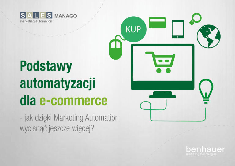 KUP Podstawy automatyzacji dla e-commerce - jak dzięki Marketing Automation wycisnąć jeszcze więcej? SPIS TREŚCI 3 Wprowadzenie - Jak działa system Marketing Automation 4 Monitorowanie zidentyfikowanych kontaktów oraz anonimowych wizyt 5 Integracja platformy sklepowej 6 Segmentacja bazy kontaktów – podstawa udanej automatyzacji 8 Podstawowe reguły automatyzacji 9 Dynamiczne maile one-to-one 11 Spersonalizowane dynamiczne wiadomości e-mail wpływają na średni czas wizyty na stronie www 12 Automatyczne powiadomienia 13 Dynamiczna treść na stronie www 14 Progresywne pop-up’y 15 Ratowanie porzuconych koszyków zakupowych 16 Win-back, cross-selling i up-selling 17 Customer Lifecycle Management 19 Lead Nurturing – edukuj swojego potencjalnego klienta 20 Dodatkowe moduły i funkcjonalności - wysyłka urodzinowa i aplikacje Facebook 21 22 Wysyłka urodzinowa i aplikacje Facebook Podsumowanie – korzyści dla e-commerce płynące z automatyzacji Podstawy automatyzacji dla e-commerce 2 Wprowadzenie - Jak działa system Marketing Automation Systemy klasy Marketing Automation to wielowymiarowe oprogramowania, tworzone najczęściej w modelu SaaS, które swoją popularność zyskały stosunkowo niedawno. Ich głównym założeniem jest automatyzowanie różnorakich procesów marketingowych, takich jak kampanie sprzedażowe, e-mail marketing, Lead Nurturing oraz wiele innych. Stosowanie wyżej wymienionych rozwiązań ma na celu podniesienie efektywności pracy poszczególnych działów jak handlowego czy działu marketingu. Automatyzacja działań marketingowych eliminuje dotychczasowy problem większości działów sprzedaży – ręcznego wprowadzania danych potencjalnych klientów. Oprogramowanie Marketing Automation składa się przeważnie z kilku modułów potrzebnych do realizacji całości procesów sprzedażowo – marketingowych. Niezbędny jest tutaj zintegrowany moduł CRM (Customer Relationship Management), pozwalający całej firmie pracować na spójnych i ujednoliconych danych. Dodatkowym ułatwieniem są takie moduły jak: Automatyzacja, gdzie ustawiane są różnego rodzaju reguły automatyzacji, które pozwalają reagować na konkretne zachowania potencjalnych i aktualnych Klientów. Komunikacja jest poświęcona tworzeniu wiadomości, e-maili, newsletterów i innych form komunikowania się z potencjalnymi klientami. Z kolei moduł Analityki pozwala kontrolować skuteczność działań marketingowych dzięki rozbudowanym narzędziom do zbierania danych. Sam system działa we wspomnianym modelu SaaS, co oznacza, że nie odbywa się tutaj żaden proces instalacji. Jedyne czego potrzebujemy, to loginu i hasła, całość pracy odbywa się w chmurze. Dodatkowym atutem takiego rozwiązania jest fakt, że do systemu mamy dostęp właściwie z każdego miejsca na ziemi z dostępem do sieci. KUP Podstawy automatyzacji dla e-commerce 3 Monitorowanie zidentyfikowanych kontaktów oraz anonimowych wizyt Systemy do automatyzacji marketingu bazują na module do monitorowania osób, które wchodzą na stronę www. Mowa o real time monitoringu. Dzięki monitorowaniu zachowania osób na stronie internetowej, dysponujemy wartościową wiedzą o aktualnych i potencjalnych klientach, którą możemy wykorzystać. Na podstawie rozpoznanych zachowań system buduje automatycznie profil behawioralny każdego zidentyfikowanego użytkownika sklepu internetowego. Otrzymujemy bardzo dokładną informację na temat zainteresowania konkretnej osoby na wczesnym etapie procesu zakupowego. System rozpoznaje intencje zakupowe potencjalnych klientów analogicznie jak w stacjonarnym sklepie, kiedy klient zatrzymuje się przy regałach, przegląda konkretne produkty, czy sprawdza ich ceny. Wszystkie zebrane przez system informacje gromadzone są w jednym miejscu – na karcie kontaktu. System gromadzi informacje zarówno o rozpoznanych kontaktach, gdzie informacje przypisywane są do konkretnej karty w bazie, jak i o tych anonimowych użytkownikach strony, do których pozwala dopasowywać treść i komunikować się z nimi jeszcze w trakcie wizyty na stronie sklepu – na przykład za pomocą bannerów czy rekomendacji produktów. Jakie informacje gromadzi system SALESmanago? Identyfikuje zachowania konkretnych osób z bazy kontaktowej Odwiedzane podstrony wraz ze szczegółowymi produktami, którymi użytkownik się interesował oraz czas na nich spędzony Jest nas coraz więcej! Internauci w Polsce 21,6 mln internautów (64% populacji) Źródła wejść na stronę oraz wyszukiwane frazy Automatycznie generuje cotygodniowe raporty odwiedzin Otwarcia i kliknięcia w wiadomości e-mail 17 mln (78% internautów) odwiedza serwisy eCommerce Polubienia produktów na stronie sklepu Dokonywane transakcje Zawartość koszyków zakupowych Znając źródło zainteresowania potencjalnego klienta, wiedząc, jakimi konkretnymi produktami z naszej oferty się interesował, w prosty sposób możemy tę wiedzę wykorzystać, wysyłając mu dopasowaną do jego preferencji ofertę handlową w postaci dynamicznego maila. 12,7 mln (59% internautów) odwiedza eSklepy Źródło: gemiusAudience, 05.2014 Dane dla populacji w wieku 7-75 lat. Podstawy automatyzacji dla e-commerce 4 Integracja platformy sklepowej W przypadku segmentu e-Commerce i sklepów internetowych proces integracji platformy sklepowej najczęściej przebiega w prosty i szybki sposób. Jeśli istnieje już gotowa integracja systemu z daną platformą, to całość odbywa się poprzez podpięcie wtyczki. W przypadku mniej popularnych platform, które nie posiadają jeszcze udostępnionej integracji, kluczową kwestią jest przekazanie danych przez API. Wtedy przy odrobinie pracy programisty również nastąpi integracja najważniejszych elementów i możliwość pracy na systemie. Branża e-commerce jest ściśle nastawiona na sprzedaż, stałe pozyskiwanie nowych klientów i utrzymywanie tych już raz zdobytych. Zadanie to jest szczególnie utrudnione 