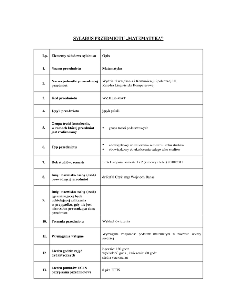 sylabus przedmiotu „matematyka”
