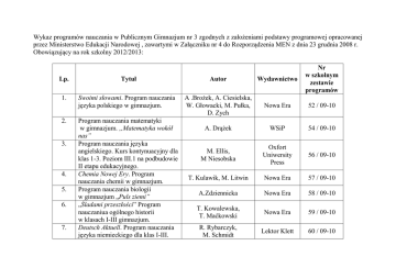 Zestaw programów nauczania - Publiczne Gimnazjum Nr 3 w Grajewie