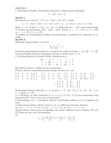 1. Znaleźć pierwiastki z1 , z2 równania (4 − 3i)z 2 − (2 + 11i)z − (5 + i) = 0. Następnie