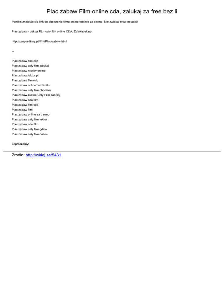 Plac zabaw Film online cda, zalukaj za free bez li Poniżej znajduje się link do obejrzenia filmu online totalnie za darmo. Nie zwlekaj tylko oglądaj! Plac zabaw - Lektor PL - cały film online CDA, Zalukaj ekino http://xsuper-filmy.pl/film/Plac-zabaw.html -Plac zabaw film cda Plac zabaw cały film zalukaj Plac zabaw napisy online Plac zabaw lektor pl Plac zabaw filmweb Plac zabaw online bez limitu Plac zabaw cały film chomikuj Plac zabaw Online Cały Film zalukaj Plac zabaw cda film Plac zabaw film cda Plac zabaw film Plac zabaw online za darmo Plac zabaw cały film lektor Plac zabaw cda film Plac zabaw cały film gdzie Plac zabaw cały film online Zapraszamy! Zrodlo: http://wklej.se/5431