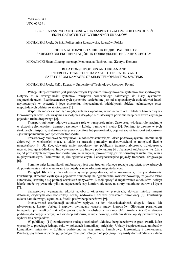 удк 629.341 udc 629.341 bezpieczeństwo autobusów i transportu