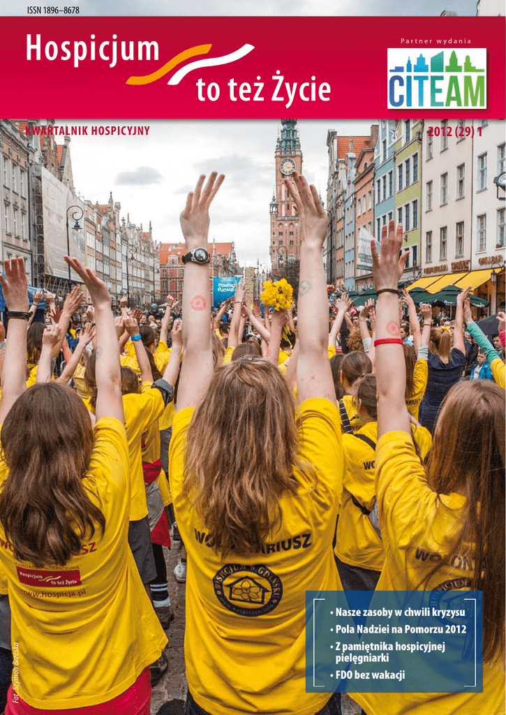 ISSN 1896–8678 Hospicjum Fot. Szymon Brzóska KWARTALNIK HOSPICYJNY Partner wydania to też Życie 2012 (29) 1 • Nasze zasoby w chwili kryzysu • Pola Nadziei na Pomorzu 2012 • Z pamiętnika hospicyjnej pielęgniarki • FDO bez wakacji I OD REDAKCJI W numerze: Wyślij SMS o treści POMAGAM pod nr 7279 (koszt 2 zł + VAT) Środki zebrane z SMS-ów zostaną przeznaczone na: ◆ zakup leków i sprzętu medycznego dla pacjentów hospicjów i ośrodków opieki paliatywnej ◆ przeprowadzenie szkoleń dla koordynatorów wolontariatu i pracowników hospicjów ◆ pomoc dzieciom osieroconym będącym pod opieką hospicjów Zbiórka prowadzona w ramach kampanii społecznej Hospicjum to też Życie Jak możesz pomóc Fundacji Hospicyjnej? ◆ ◆ ◆ przekaż 1% podatku dochodowego: KRS 0000 201 002 wpłać darowiznę na konto: 72 1540 1098 2001 5562 4727 0001 zostań wolontariuszem Z ŻYCIEM NA TY 2 Psychologia — zajęcia (do bólu) praktyczne Kryzys jako szansa na pełniejsze życie oczami psycholog, która teorię musiała zastosować w swoim życiu POROZMAWIAJMY 6 Roszek jest szczęśliwy i walczy Rozmowa z Dorotą Troką, której synek jest pod opieką Domowego Hospicjum Dziecięcego im. ks. E. Dutkiewicza SAC w Gdańsku HOSPICJUM OD ŚRODKA 10 Jeden tydzień w Domowym Hospicjum Dziecięcym Zapiski pielęgniarki, czyli życie schwytane na gorąco WOLONTARIAT 13 Honorowi Wolontariusze A.D. 2012 Najlepsi i najofiarniejsi wolontariusze uhonorowani przez Fundację Hospicyjną i Hospicjum im. ks. E. Dutkiewicza SAC w Gdańsku Minuta ciszy po M. Wspomnienie uczestniczki kursu dla wolontariuszy medycznych NASZE AKCJE 16 Pola Nadziei już rozkwitły Pola Nadziei na Pomorzu, wspólna akcja pomorskich hospicjów i Fundacji Hospicyjnej W grupie moc i siła Wielki sukces połączonych sił Citeam.pl i Fundacji Hospicyjnej Z myślą o dzieciach „Uśmiech Dziecka na Dzień Dziecka”, wakacje dla podopiecznych, „Kolorowy Piórnik”, czyli FDO nie próżnuje Biblioteka Fundacji Hospicyjnej 20 Nowość w Bibliotece Fundacyjnej! „Przewlekle chore dziecko w domu. Poradnik dla rodziny i opiekunów” już w sprzedaży AKTUALNOŚCI Fundacja Hospicyjna 80-208 Gdańsk, ul. Chodowieckiego 10 tel.: + 48 58 345 90 60 20 Konferencja „GOŚCINA SERCA” I „RYNEK USŁUG”. IDEE A REALIA. Konferencja z okazji 10. rocznicy śmierci ks. Eugeniusza Dutkiewicza SAC www.fundacjahospicyjna.pl www.hospicja.pl ISSN 1896-8678 „Obyś żył w ciekawych czasach” — przekleństwo czy wyzwanie? Czasy bez wątpienia zaskakują wielością i różnorodnością wydarzeń i zależnie od tego, w jakiej sytuacji się znajdujesz, taki przyjmują koloryt. Dla wolontariuszy w żółtych koszulkach, biorących udział w Polach Nadziei, mimo niewątpliwego trudu, pełne są słońca, uśmiechu, życzliwości, tańca, śpiewu i innych zaskakujących wydarzeń. Dla beneficjentów ich działań — terminalnie chorych — źródłem nadziei, wyrazem solidarności ludzi zdrowych ze światem ludzi chorych i także konkretnym wsparciem materialnym. Dla bliskich, którzy zmagają się z chorobą członka rodziny — szczególnym wyzwaniem i swoistym rachunkiem zysków i strat, a dla opiekunów: lekarzy, pielęgniarek, wolontariuszy medycznych — codziennością, z którą także trzeba się mierzyć każdego dnia. O tym wszystkim piszemy w obecnych wydaniu kwartalnika, który po ponad rocznej przerwie zdecydowaliśmy się reaktywować. Zapraszamy do współtworzenia naszej gazety, by była forum wymiany naszych doświadczeń, źródłem wsparcia dla jednych i inspiracji dla innych. as PRENUMERATA — BEZPŁATNA WYDAWCA Fundacja Hospicyjna REDAKCJA Redaktor naczelna: Alicja Stolarczyk Zadzwoń pod nr 58 345 90 60 Organizacja Pożytku Publicznego KRS 0000201002 80-208 Gdańsk, ul. Chodowieckiego 10 tel./fax 58 345 90 60 e-mail: [email protected] www.hospicja.pl www.fundacjahospicyjna.pl Nr konta: 72 1540 1098 2001 5562 4727 0001 Sekretarz redakcji: Magda Małkowska Zespół redakcyjny: Anna Kulka-Dolecka, Anna Janowicz, Agnieszka Król, Jolanta Leśniewska, Danuta Stopieńska, Olga Woźniak, Justyna Ziętek Redakcja nie odsyła niezamówionych materiałów i jednocześnie zastrzega sobie prawo do wprowadzenia zmian redakcyjnych w nadesłanych tekstach, w tym do ich skracania. Prawo do używania, kopiowania i rozpowszechniania materiałów dostępnych w „Hospicjum to też Życie” wraz z elementami graficznymi możliwe jest po uprzednim uzyskaniu zgody redakcji i jest obwarowane zastrzeżeniami wynikającymi z przepisów prawa autorskiego. Opracowanie graficzne i skład: Jacek Rembowski Druk: Drukarnia Via Medica 80-180 Gdańsk, ul. Świętokrzyska 73, www.viamedica.pl 1 BIBLIOTEKA Z ŻYCIEM NAFUNDACJI TY HOSPICYJNEJ BIBLIOTEKA FUNDACJI Z ŻYCIEM HOSPICYJNEJ NA TY Psychologia zajęcia (do bólu) praktyczne O kryzysie zwykliśmy myśleć i mówić z lękiem jako o stanie, w którym nasze plany legną w gruzach, marzenia się rozwieją, a zwykła codzienność będzie katorgą. Czy faktycznie nie istnieją jego żadne jaśniejsze strony? Psycholog w opałach Jednym ze stereotypów funkcjonujących w społeczeństwie jest przekonanie, że wiele osób wybierając zawód psychologa, kieruje się własnymi problemami psychicznymi i chęcią pomocy samemu sobie. Niewątpliwie w gronie studentów psychologii i psychologów są ludzie mający problemy psychiczne i emocjonalne, tak jak nie brakuje ich wśród przedstawicieli innych grup zawodowych. Dyplom psychologa nie odbiera przecież nikomu statusu człowieka. Warto jednak zastanowić się także nad inną zależnością. A co dzieje się w życiu psychologów, gdy już posiądą dużą część „tajnej” wiedzy psychologicznej? Czy dzięki temu „wtajemniczeniu” łatwiej im pokonywać kryzysy, pojawiające się na ich życiowej drodze? Czy może ich też dotyczy stare przysłowie o szewcu, co bez butów chodzi? Na oba te pytania odpowiedzi jest tyle, ilu psychologów i ich 