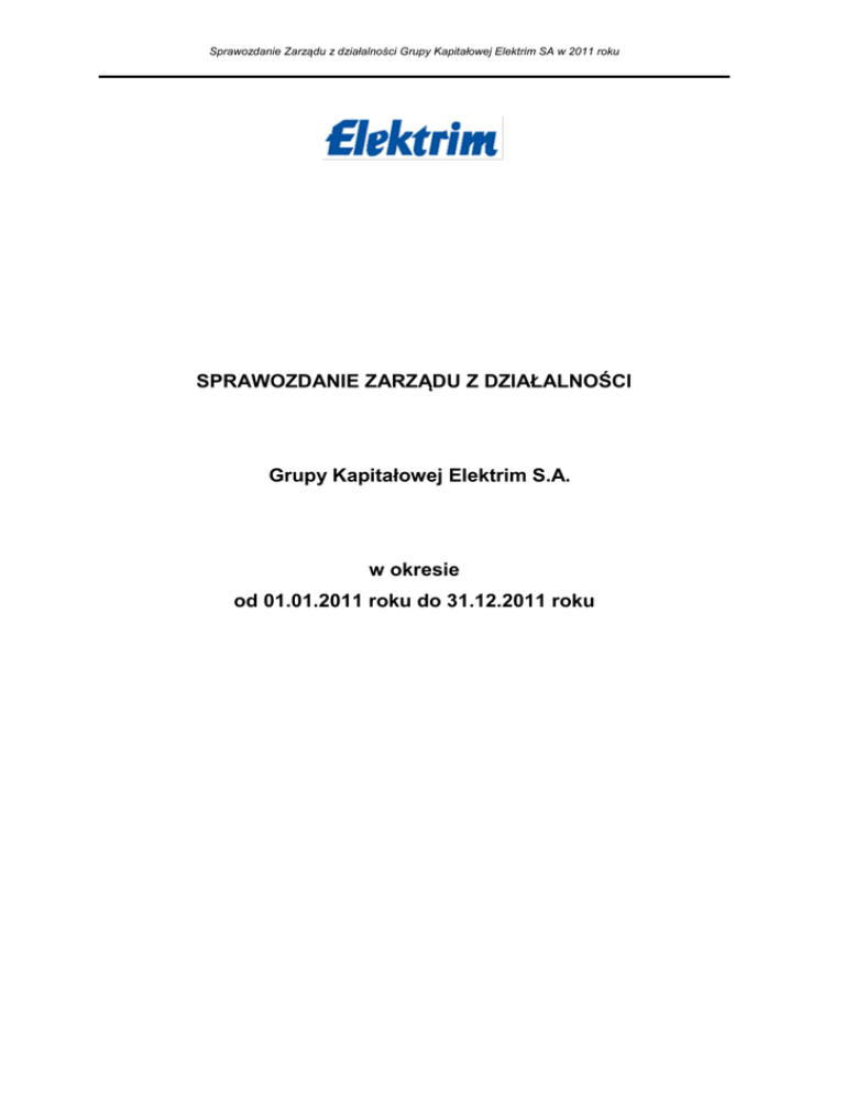 Sprawozdanie Zarządu z działalności Grupy Kapitałowej Elektrim SA w 2011 roku