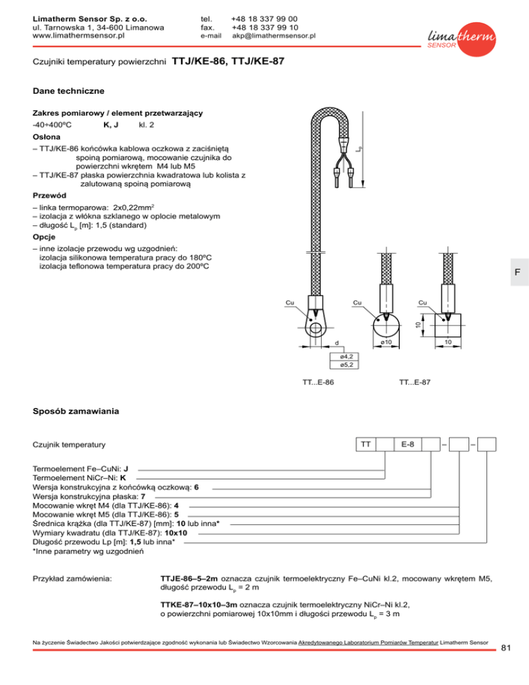 Dane techniczne 81 Czujniki temperatury powierzchni TTJ/KE