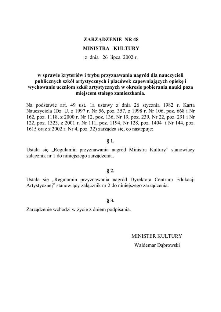 ZARZĄDZENIE NR 48 MINISTRA KULTURY z dnia 26 lipca 2002 r