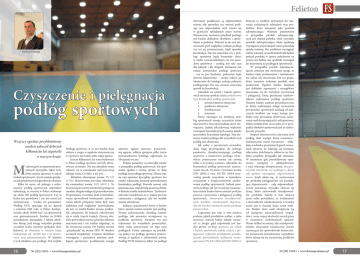 Felieton Felieton Andrzej Zabiega Czyszczenie i pielęgnacja podłóg sportowych Wszyscy zgodnie przyklaśniemy modzie jaka od dobrych kilkunastu lat zagościła w naszym kraju. M oda na sport, na uprawianie przeróżnych dyscyplin, także tych, które można uprawiać w salach i halach sportowych. A tych ostatnio przybywa jak przysłowiowych grzybów po deszczu. Kilka lat temu, od jednego z wykonawców podłóg sportowych usłyszałem informację, że rocznie w Polsce wykonuje się około 500 podłóg sportowych. Czy ta liczba jest prawdziwa i czy ten trend jest utrzymywany – trudno mi powiedzieć. Według GUS, opierając się na danych z września 2010 roku w Polsce funkcjonowało około 19.000 hal i sal sportowych oraz gimnastycznych. Średnio na 10.000 mieszkańców przypadało 5 takich obiektów. Biorąc pod uwagę wszystkie podane wcześniej liczby, możemy spokojnie skalkulować, że aktualnie w naszym kraju funkcjonuje ok. 20.000 hal i sal sportowych oraz gimnastycznych. W każdym z tych obiektów jest podłoga. Nie zwykła. 16 Podłoga sportowa. A to jest bardzo duża różnica z czego, w aspekcie utrzymania jej w czystości, nie każdy sobie zdaje sprawę. Jeszcze kilkanaście lat temu budowane w Polsce podłogi sportowe nie były obwarowane normami. Nie ma aktualnie sensu wdawać się w rozważania nad przyczyną takiego stanu. Co było, a nie jest … . Aktualnie obowiązuje norma PN EN 14 904. Honorowane jest także odwołanie do niemieckiej normy DIN 18032-2. To honorowanie normy niemieckiej polega na zasadzie długotrwałego jej przywoływania. Wspomniany wcześniej brak znormalizowania spowodował konieczność zastosowania takich przepisów, które były nam najbliższe pod względem terytorialnym, ale też, co trzeba bardzo mocno podkreślić, przepisów, do których odwoływano się w wielu innych krajach. Zresztą obydwie przywołane normy są bardzo zbliżone merytorycznie i nie trudno odgadnąć, że do stworzenia normy EN bardzo mocno „przysłużyła” się norma DIN. W obydwu normach znajdujemy wyraźnie określone wymagania i parametry stawiane podłogom sportowym: pochłanianie energii Nr [20] 1/2013 • www.firmasprzatajaca.pl uderzeń, ugięcie pionowe, powierzchnię ugięcia, odbicie sprężyste piłki, tarcie powierzchniowe (poślizg), odporność na obciążenie toczne. Podane parametry są niezwykle istotne w przypadku podłóg sportowych. Ich spełnienie zgodne z normą sprwia, że dana podłoga jest podłogą sportową. Można więc na niej uprawiać dyscypliny sportowe bez ryzyka odniesienia kontuzji spowodowanej konstrukcją podłogi. Pozwala nazwać salą gimnastyczną, salą lub halą sportową obiekt, w którym została zainstalowana. Trzeba jednak mieć świadomość, że w trakcie procesu czyszczenia i pielęgnacji cały ten wysiłek można zniwelować. Jednym z parametrów, który w bardzo łatwy sposób można zmienić jest poślizg. Normy jednoznacznie określają wartość poślizgu jaki powinien występować na podłodze sportowej. Parametr ten jest odnoszony do wszystkich powierzchni, które mają zastosowanie na tego typu podłogach. Firmy zajmujące się produkcją pokryć na podłogi sportowe przystosowują je zgodnie z założeniami normy. Podłogi PCW, linoleum, lakier na podłogi drewniane poddawane są odpowiednim testom, aby sprawdzić czy wartość poślizgu jest odpowiednia czyli mieści się w granicach zakładanych przez normy. Wyznaczony normami przedział poślizgu jest bardzo dokładnie określony i sprawdzany w praktyce. Wartość ta nie jest różnicowana pod względem rodzaju podłogi czy też jej przeznaczenia, bądź sposobu konstrukcji. Nie ma znaczenia czy z podłogi sportowej będą korzystały dzieci w wieku wczesnoszkolnym czy też zawodowi sportowcy – poślizg jest taki sam dla jednych i dla drugich. Nieistotny jest rodzaj nawierzchni podłogi sportowej – czy to jest linoleum, poliuretan bądź drewno lakierowane – norma odnosi się identycznie do każdego rodzaju pokrycia podłogowego. Nie ma wreszcie znaczenia sposób jej konstrukcji. Aktualnie na salach i halach sportowych możemy spotkać cztery podstawowe typy konstrukcji podłóg sportowych: 1. powierzchniowo elastyczne 2. punktowo elastyczne 3. kombinowane 4. mieszane Firmy zajmujące się instalacją podłóg sportowych stosują oczywiście różne nazewnictwo oraz wprowadzają nowe rozwiązania. Jednak zdecydowaną większość rozwiązań konstrukcyjnych można śmiało sprowadzić do podanej typologii. Tym niemniej stopień poślizgu dla wszystkich tych podłóg jest identyczny. Jak widać z powyższych wywodów, dużą wagę przywiązałem do jednego parametru charakteryzującego podłogi sportowe, a mianowicie poślizgu. Oczywiście przytoczone normy nie mówią tylko o tej jednej wartości. Aktualnie do konstrukcji podłóg sportowych zastosowanie ma ok. 20 norm. Cytowane normy DIN 18032-2 oraz PN-EN 14904 przywołuję przede wszystkim w kontekście związanym z bezpieczeństwem użytkowania podłóg sportowych. Jednak parametr poślizgu jak już wcześniej zaznaczyłem można bardzo łatwo zmienić podczas procesu czyszczenia i pielęgnacji podłóg sportowych. Stosowanie nieodpowiednich środków chemicznych doprowadza do bardzo istotnych zmian poślizgu powierzchni. Logicznym jest więc w tym miejscu podanie jakich produktów unikać, a jakie stosować. Łatwiej będzie jednak wymienić te drugie gdyż odpowiedź jest bardzo prosta: podłogi sportowe na salach i halach sportowych należy czyścić i pielęgnować wyłącznie produktami posiadającymi potwierdzenie spełnienia wymagań norm PN-EN 14904 lub DIN 18032-2. Dotyczy to środków używanych do usuwania codziennych zabrudzeń oraz produktów, które stosujemy jako powłoki zabezpieczające. Ważnym parametrem w przypadku powłok zabezpieczających jest stopień połysku. Otóż wszystkie powłoki zabezpieczające, które spełniają wymagania przywołanych norm posiadają optykę 