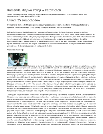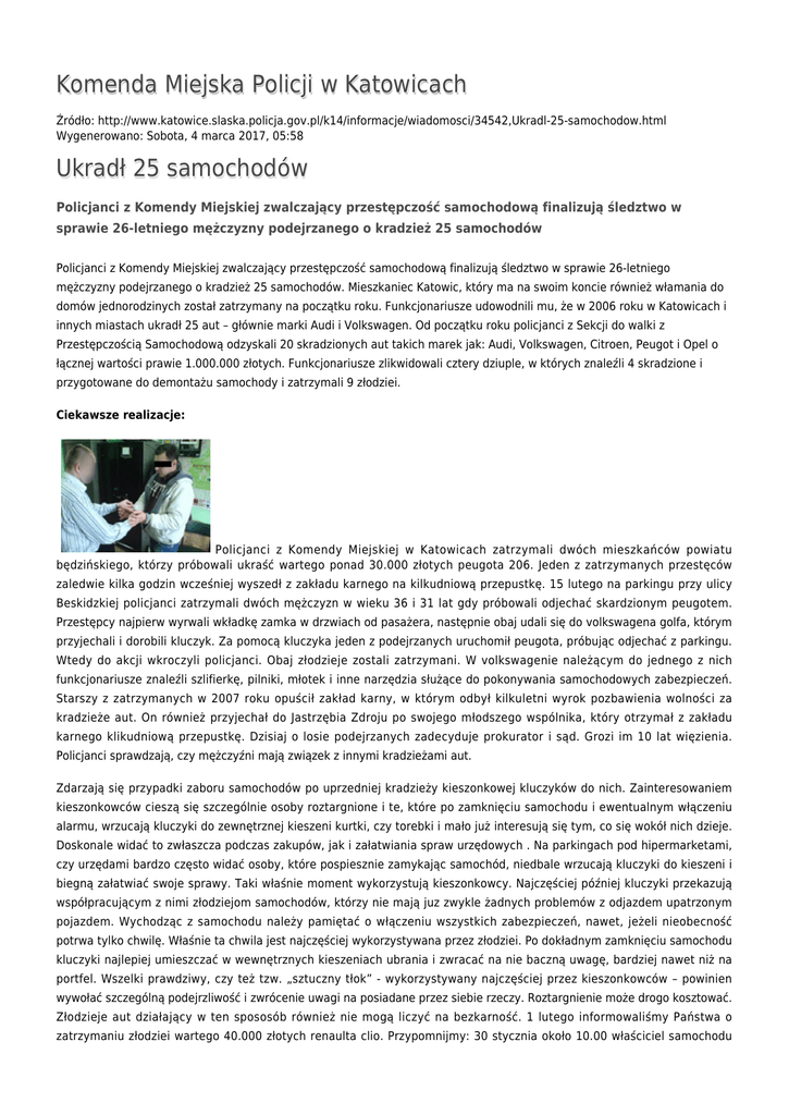 Komenda Miejska Policji w Katowicach Ukradł 25 samochodów
