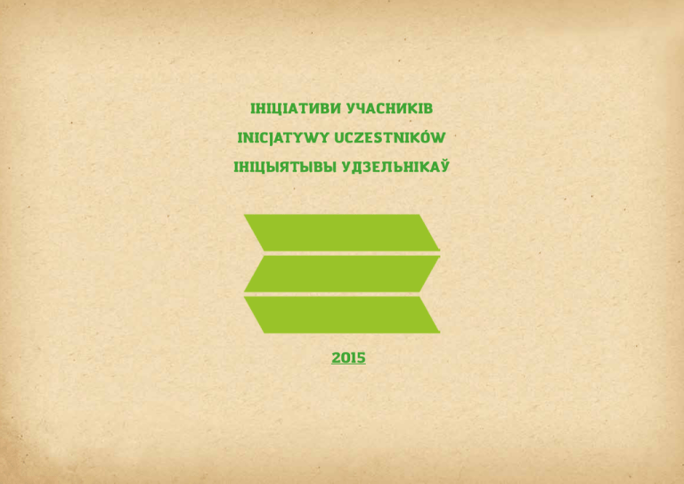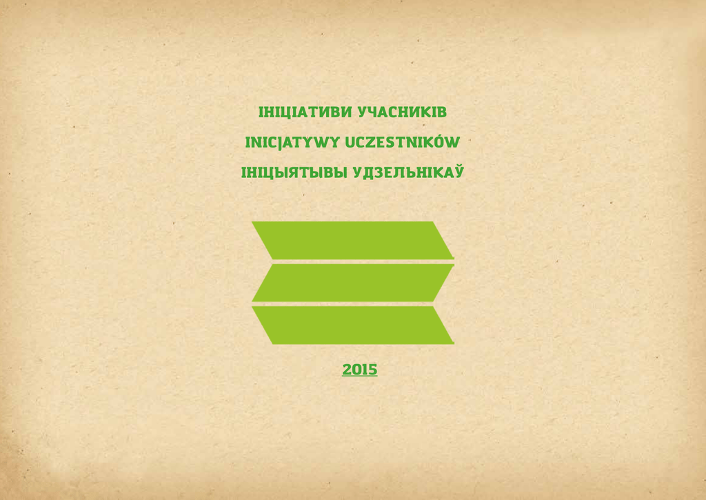 ІНІЦІАТИВИ УЧАСНИКІВ INICJATYWY UCZESTNIKÓW ІНІЦЫЯТЫВЫ УДЗЕЛЬНІКАЎ 2015 ŻYWA BIBLIOTEKA ŻYWIECCZYZNY HUMAN LIBRARY OF ŻYWIECCZYZNA “Żywa Biblioteka Żywiecczyzny” - to projekt Urszuli Ziemskiej, który miał miejsce 2 października 2015 roku. Pomysłem Uli było stworzenie przestrzeni do dyskusji o najtrudniejszych tematach w zupełnie nowej formie - ludzie stali się na ten czas żywymi książkami, które można było na moment wypożyczyć. W tej nietuzinkowej bibliotece znaleźli się reprezentanci różnego rodzaju grup społecznych takich jak Ślązak, Ateistka, Feministka czy Weganka. W wydarzeniu wzięli udział uczniowie Zespołu Szkół Mechaniczno-Elektrycznych w Żywcu, jak i Żywczanie, którzy popołudniu odwiedzili kawiarnię DeKaffe. Podczas spotkania odbyło się w sumie 267 rozmów, które dały początek do refleksji na temat stereotypów, uprzedzeń i praw człowieka. URSZULA ZIEMSKA “Human Library of Żywiecczyzna” is an idea of Urszula Ziemska conducted on 2 of October, 2015. The main goal of the project was to create a space where people become living books which you can borrow for a few minutes. Great variety of people involved - consisting of Atheist, Vegan, Feminist, native Silesian and many more - led to discussions on difficult topics taken from completely different angle. Event gathered pupils from Mechanical and Electrical School Complex in Żywiec as well as other inhabitatnts of the city, who visited the cafe DeKaffe in the autumn evening. During the meeting, total of 267 conversations were carried out as stereotypes, prejudices and human rights matters were once again taken into consideration. NIEZWYKŁE HISTORIE ZWYKŁYCH LUDZI EXTRAORDINARY STORIES OF ORDINARY PEOPLE Projekt «Niezwykłe historie zwykłych ludzi» zakłada, że każda osoba ma coś ciekawego do przekazania - swoją własną, wyjątkową historię. Projekt ma na celu pokazanie dzieciom możliwości wykorzystania swoich zainteresowań oraz zdolności w życiu zawodowym. W ramach projektu powstały dwa filmy prezentujące historie osób, które prowadzą życie wypełnione pasją, co powoduje, że zwykłe czynności nabierają niezwykłego kolorytu. Filmy mają za zadanie inspirować dzieci ze świetlic opiekuńczo-wychowawczych do stworzenia własnych rysunków i opowiadań o niezwykłych historiach zwykłych ludzi z ich otoczenia. Pierwsza edycja inicjatywy odbyła się we wrześniu w świetlicy KSM AL w Lublinie. Druga odsłona natomiast miała miejsce w październiku i została poprowadzona przez Paulinę Raczkowską w jednej z krakowskich świetlic. AMELIA KOSIERKIEWICZ Amelia’s project “Extraordinary stories of ordinary people” assumes that every person has something interesting to share - his personal unique story. The aim of this initiative is to show children the possibility of using personal interests and talents in their career. In the frame of the project two movies were made which present stories of people lives’ filled with passion. In this approach routine tasks become extraordinary colorful. Movies intend to be an inspiration for children from day-room to create their own drawings and stories about extraordinary stories of ordinary people from their community. The first edition of the project took place in the KSM AL day-room in Lublin in September. Next month the second edition was conducted by Paulina Raczkowska in one of the Cracow day-rooms. MATEUSZ KONIECZNY KULTURALNE KREACJE CULTURAL CREATIONS W Kliczkowie Małym w ramach “Kulturalnych kreacji», autorskiej inicjatywy Mateusza Koniecznego, powstała indiańska wioska. Mateusz razem ze swoim zespołem przygotował dla dzieci i młodzieży z tej miejscowości mnóstwo atrakcji na wakacyjny czas. In Kliczków Mały in the frame of “Cultural creations” - the idea of Mateusz Konieczny - the Indian village was created. Many absorbing attractions were prepared for children and youngsters by Mateusz and his team. Projekt zgromadził rzesze ciekawskich, którzy chcieli poznać kulturę kompletnie odmienną od europejskiej. Podczas spotkania uczestnicy wydarzenia wsłuchiwali się w czytane na głos opowieści o indiańskich rytuałach. Dzieci z pobliskich wsi szczególnie zaangażowały się w inicjatywę Mateusza - wspólnie wybudowały tipi oraz przygotowywały indiańskie stroje. Dozens of curious people gathered to find out a little more about culture so much different than theirs. During the event participants were listening to tales about Indian rituals. Children from nearby villages were particularily involved - together they built tepee and made typicall Indian clothes. ODSZUKAĆ PRZEZNACZENIE SEARCHING FOR DESTINATION KORNELIA RYCZEK “Odszukać przeznaczenie” to dwudniowe warsztaty dotyczące relewantnego kreowania ścieżek zawodowych, których pomysłodawczynią jest Kornelia Ryczek. Warsztaty miały za zadanie pomóc młodym ludziom w odnalezieniu ich drogi życiowej w zgodzie z własnymi potrzebami i preferencjami. Wzięło w nich udział około 10 licealistów, którzy krok po kroku odkrywali, czym jest pasja i jak należy planować swoją przyszłość nie zapominając przy tym o wartości swoich talentów i odpowiadając tym samym na potrzeby rynku pracy. Podczas spotkań obecni byli doradcy zawodowi. Two-day workshop about creating relevant career path called “Searching for destination” is the project by Kornelia Ryczek. Its goal was to help young people to find their way in line with personal needs and preferences. 10 high-school students took part and step by step they discovered the real meaning of passion and how to create your future without forgeting about your strenghts. The workshop was supported by career advisors PARASOL SZTUKI UMBERELLA OF ART ALEKSANDRA SKORŻYŃSKA “Parasol Sztuki” był unikatowym wydarzeniem kulturalnym dla mieszkańców Ostrowca Świętokrzyskiego, którego celem było zachęcenie społeczności loka