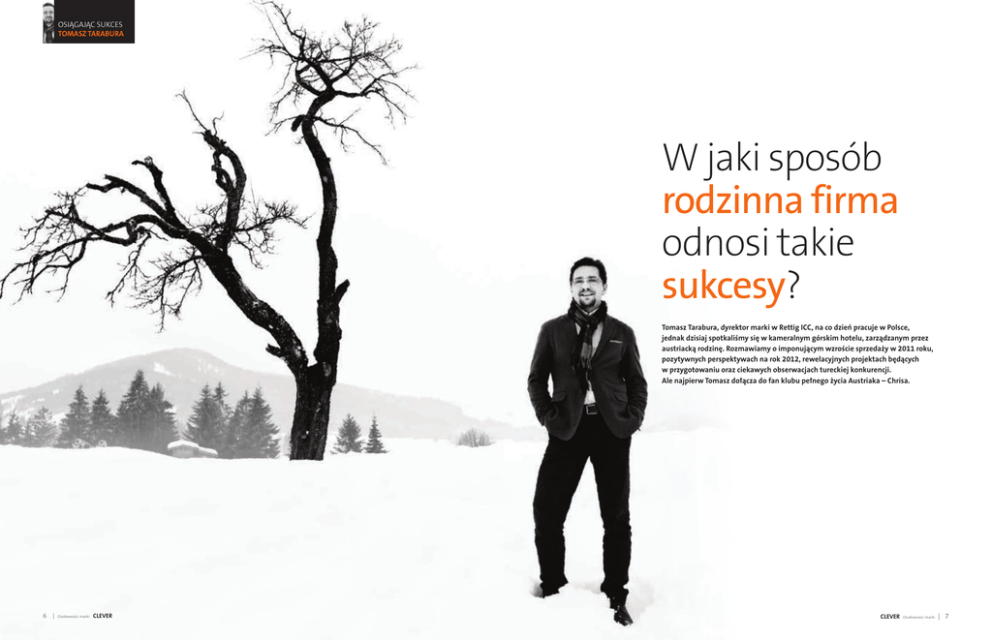 osiągając sukces Tomasz Tarabura W jaki sposób rodzinna firma odnosi takie sukcesy? Tomasz Tarabura, dyrektor marki w Rettig ICC, na co dzień pracuje w Polsce, jednak dzisiaj spotkaliśmy się w kameralnym górskim hotelu, zarządzanym przez austriacką rodzinę. Rozmawiamy o imponującym wzroście sprzedaży w 2011 roku, pozytywnych perspektywach na rok 2012, rewelacyjnych projektach będących w przygotowaniu oraz ciekawych obserwacjach tureckiej konkurencji. Ale najpierw Tomasz dołącza do fan klubu pełnego życia Austriaka – Chrisa. 6 | Osobowości marki CLEVER CLEVER Osobowości marki | 7 osiągając sukces Tomasz Tarabura “Brałem udział w procesie, który miał na celu polepszenie kontynencie, co dało mu wiedzę o odmiennych kulturach wyjaśnia Tomasz. “Osią jest jakość, dlatego staramy się, aby na label. Mimo, iż nasze markowe produkty są droższe od produkowanych współpracy pomiędzy ludźmi” − wyjaśnia Tomasz − “wspaniała i narodowościach. Lata doświadczeń umożliwiają mu dostrzeganie każdym rynku nasze produkty były postrzegane jako te o najwyższej na potrzeby private label, ich sprzedaż zwiększyła się bardziej niż tych inicjatywa komunikacji międzykulturowej zainicjowana przez różnic i dzielenie się informacjami o tym, jak działają i myślą jakości. Jako preferowana marka wierzymy, że powinniśmy dawać tańszych. W moim przekonaniu dowodzi to skuteczności naszej Astrid, naszą dyrektor ds. personalnych, która zauważyła, że chociaż osoby z danego kraju” – mówi Tomasz. I rzeczywiście każdy inspirację każdej grupie klientów − zarówno instalatorom, jak koncepcji marketingu.” od restrukturyzacji firmy minęło już 5 lat, nadal powstają konflikty z uczestników austriackiego spotkania kadry zarządzającej, z którym i klientom indywidualnym. Dlatego do informowania i inspiracji i dyskusje utrudniające wzajemne porozumienie i postęp”. Tak rozmawialiśmy, w podobny sposób wychwalał Chrisa, nie tylko jako wykorzystujemy materiały marketingowe.” długi czas wydawałby się wystarczający, aby grupa (8) osób dobrze wykładowcę, ale także za rewelacje które zaprezentował zebranemu się poznała. Musimy wziąć jednak pod uwagę fakt, że osoby zespołowi. Kluczem do zrozumienia rozmówcy jest empatia, reprezentujące fińską firmę pochodzą z różnych krajów. “Na początku było wiele tematów, o których nie potrafiliśmy rozmawiać” “Prognozy na rok 2012 wskazują, że każdą branżę czeka wielka niewiadoma” − mówi Tomasz − “niepewność jest duża i widzimy, jak niestabilnie reagują giełdy. Jednak obserwujemy również, że coraz niezbędny element porozumienia osób zarządzających globalną Ale każda firma mówi “chcemy inspirować” – czy to nie jest tylko puste hasło marketingowe? firmą rodzinną. Temat bliskiego porozumienia przewija się jako W tym momencie Tomasz sprawia wrażenie lekko urażonego, ale ciągłości dostaw, dzięki naszej rozbudowanej sieci logistycznej. wyjaśnia Tomasz Tarabura “ale teraz przyzwyczailiśmy się do swoich główny punkt rozmowy z całą zebraną grupą. Odnoszę wrażenie, panuje nad sobą. Być może podczas warsztatów Chris wspominał Wszystko to, oraz nowości produktowe, które wprowadzamy na rynek, indywidualnych stylów działania, dopasowaliśmy się do dynamiki że jest to niemal cecha rodzinna. Jednak zanim zbadam, jakimi o irlandzkich autorach zadających trudne pytania. “Mam na myśli sprawiają, że spodziewamy się dalszych wzrostów w 2012 roku.” grupy, a to jest ważne w budowaniu zespołu.” cechami powinien wykazywać się członek grupy, Tomasz wyjaśnia, innowacje, a właśnie takie innowacyjne rozwiązania proponujemy” dlaczego firma tak znakomicie działa. odpowiada. “Wiele firm w naszej branży nadal stawia na marketing Pionierskie produkty w 2012 Z perspektywy kultur liczniejsza rzesza klientów jest przekonana o naszej wiarygodności, produktowy − pokazujący jedynie zdjęcie produktu, bez aranżacji “Dla Purmo Radson korzystną sytuacją jest fakt, że nawet gdy Inicjatywa międzykulturowej komunikacji, o której wspomniał “Rettig jest jednym z najbardziej stabilnych i godnych zaufania we wnętrzu mieszkania lub domu. My pokazujemy produkty podstawowe produkty sprzedają się w nieco mniejszych ilościach, Tomasz, to w rzeczywistości jedna osoba. Guru, który od wielu lat partnerów na rynku. Rodzina Rettigów działa w biznesie od w ich naturalnym otoczeniu. Chcemy pomóc naszym klientom biznes kompensuje sprzedaż produktów premium – grzejników przemierza korytarze zarządów wielu multinarodowych korporacji, dziesięcioleci i planuje pozostać na rynku przez kolejne. Ma w wyobrażeniu sobie, jak mogłyby wyglądać w ich domu. W ten dekoracyjnych o płaskim panelu przednim itd. Te nowe rodziny prowadząc warsztaty pomagające zrozumieć różnice wewnątrz długofalową wizję, nie szuka szybkich zysków, lecz koncentruje się sposób staramy się inspirować. W branży grzewczej mamy rozwiązania, produktów co roku notują wzrosty, niezależnie od zmian notowanych międzynarodowych firm. “Chris Fuchs pracował na każdym na budowaniu długotrwałych relacji z partnerami handlowymi” które można zastosować w każdym wnętrzu” kontynuuje Tomasz, w niższym segmencie” wyjaśnia Tomasz, entuzjastycznie “dostarczamy (a teraz również produkujemy) ogrzewanie podłogowe. zapowiadając pojawienie się nowych jasnych gwiazd na firmamencie Dlatego nie pokazujemy jednego grzejnika płytowego zawieszonego produktów w 2012 roku. “Jesteśmy pewni sukcesu naszego nowego na ścianie. Przyjrzyj się naszej broszurze, a zobaczysz pełną ofertę klimakonwektora Vido. Vido zarówno chłodzi jak i grzeje, perfekcyjnie produktów w różnych zastosowaniach. To właśnie jest inspiracja!” współpracuje z pompami ciepła. Przy projektowaniu tego produktu musieliśmy myśle