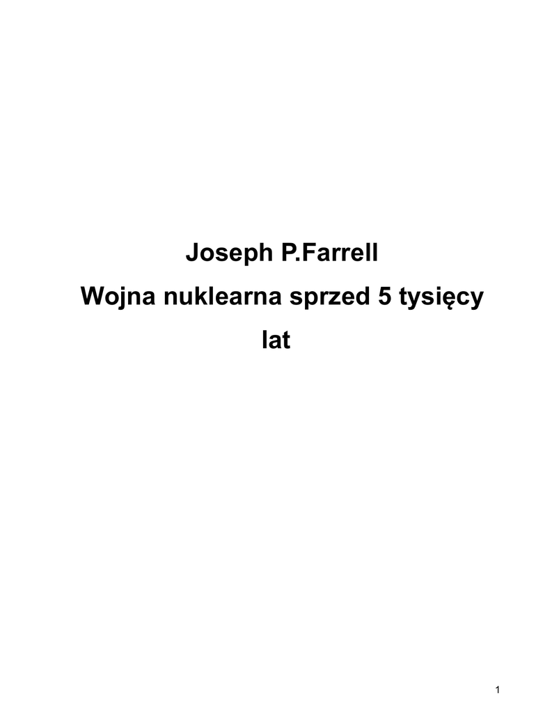 Joseph P.Farrell Wojna nuklearna sprzed 5 tysięcy lat 1 Tytuł oryginału The Cosmic War Interplanetary Warfare, Modem Physics and Ancient Texts Moim dobrym, wypróbowanym przyjaciołom: Dennisowi, Davidowi, Bradowi, Susan, Steve'owi, Scottowi, Billowi, Tracy, Walterowi i Kate - realizując zamysły, o których dyskutowaliśmy dawno temu; mojej wiernej przyjaciółce Ann, która słuchała i dodawała mi otuchy; mojej Mamie, Dorothy F. Farrell, która miała tak heroiczny udział w tej kosmicznej wojnie, gdy zaś kończyłem tę książkę, odeszła do Pana, którego miłości była wspaniałym przykładem. Benedicite Deo omnipotente, Patri et Filii et Spiritui Sancto descendat et maniat super te in aeternum. Newton nie był pierwszym przedstawicielem Epoki Rozumu. Był ostatnim z czarodziei, ostatnim Babilończykiem i Sumeryjczykiem, ostatnim wielkim myślicielem, który patrzył na świat widzialny i świat intelektualny tymi samymi oczyma jak ci, którzy zaczęli budować nasz świat intelektualny mniej niż 10 000 lat temu... Dlaczego nazywam go czarodziejem? Ponieważ patrzył na cały wszechświat i wszystko, co się w nim znajduje, jak na zagadkę, jak na sekret możliwy do odczytania po zastosowaniu czystego myślenia do mistycznych wskazówek... Newton wierzył, że te wskazówki można częściowo znaleźć w dokumentach i tradycjach przekazywanych przez bractwo w nieprzerwanym łańcuchu sięgającym oryginalnego tajemnego objawienia w Babilonie. Ekonomista John Maynard Keynes, Newton the Man, wyd. The Royal Society z okazji trzechsetnej rocznicy urodzin Newtona, 1947, s. 29; cytat za: G. de Santillana i H. Von Dechind, Hamlet’s Mill: An Essay on Myth and the Frame of Time, s. 9. 2 Spis treści Wprowadzenie: podejście do problemu I. Podstawa: Pioruny, kamienie i wiry 1. Współczesny Armagedon, starożytna katastrofa: katastrofa przegrywa w konfrontacji z technologią. 21 2. Pioruny bogów: kosmologia plazmy, zniszczenie planety i problem peratta 3. Katastrofa katastrofizmu 4. Giganci Tiamat i ziemskie szkielety 5. Prometeusz uruchamia pulsary i napędza Młyn Hamleta 6. Wnioski z części pierwszej II. Pytania 7. Bunt i wojna w panteonie 8. Historia kamieni 9. Zagadka tablic 10. Me, Mer i mars 11. Dobrzy, źli i nefilim 12. Katalog poszlak III. Dowody z obserwacji ciał niebieskich: Ziemia, Księżyc, Mars i Saturn 13. Tajemniczy Księżyc 14. Mars i jego Strach 15. Władca Pierścieni Saturna 16. Jak dawno istnieje człowiek... lub ktoś inny 17. Podsumowanie i końcowe spekulacjE Przypisy Bibliografia 3 Wprowadzenie Podejście do problemu Ta broń może zabić każdą istotę w każdym z trzech światów, nawet Indrę i Rudrę. Mahabharata1 Giganci, Nefilim, Anunaki, zderzające się planety i hipoteza eksplozji planety, katastrofa kosmiczna, komety, anioły, demony, wojna w niebiosach, upadek Lucyfera, wojny bogów, starożytne eposy, starożytna zaawansowana technologia, sztuczne księżyce, krzyżowanie ras, inżynieria genetyczna i chimery, Twarz na Marsie, obiekty nie pasujące do miejsca ich znalezienia i wreszcie... Atlantyda. Dla większości ludzi te pojęcia się ze sobą nie wiążą. Ja jednak przeczuwałem, że były one i nadal są wzajemnie powiązane, że są częściami wszechogarniającej całości na skalę wręcz kosmiczną. Ci, którzy czytali moją trylogię Gwiazda śmierci z Gizy oraz The Gize Death Star Deployed (Gwiazda śmierci z Gizy: zainstalowanie) i The GizaDeath Star Destroyed (Gwiazda śmierci z Gizy: zniszczenie) znają postawioną tam przeze mnie hipotezę o broni związanej z Wielką Piramidą oraz koncepcję, że w odległej starożytności wysoko zaawansowana technicznie broń mogła być użyta do zniszczenia planety, której obecnie brakuje w Układzie Słonecznym. Pozostał po niej tylko pas asteroid, smutne szczątki dawnej planety Krypton. Czytelnicy owych książek wiedzą także, że moim zdaniem sama Wielka Piramida - lub obiekt do niej podobny i oparty na podobnych koncepcjach fizyki skalarnej - mogła być bronią, którą zainstalowano do tego celu. Należy jednak podkreślić, że przyjęcie tego kompleksowego i bardzo spekulatywnego scenariusza wymaga zmierzenia się z ogromnymi problemami. Niektóre z nich są znane czytelnikom moich wcześniejszych książek. Wiele trudności nastręcza ustalenie chronologii wydarzeń. Ale poza tym są inne problemy, których celowo nie omówiłem we wspomnianej trylogii. Postanowiłem omówić je w kolejnej książce. Postąpiłem tak z dość prostego powodu. Uznałem, że obszerne omówienie scenariusza starożytnej wojny międzyplanetarnej oraz jej trwałych konsekwencji we wspomnianych wyżej książkach, poruszających skomplikowane zagadnienia techniczne, odciągnęłoby uwagę czytelników od ich głównego tematu. Poza tym scenariusz ten, chociaż związany z hipotezą Wielkiej Piramidy jako broni, nie jest konieczny do jej uzasadnienia. W wymienionej wyżej trylogii skupiłem uwagę przede wszystkim na rodzaju broni użytej do prowadzenia wojny. Sama wojna, jako potwierdzenie istnienia 4 niegdyś takiej broni, była tematem drugoplanowym. W tej książce, przeciwnie, koncentruję się właśnie na wojnie kosmicznej, natomiast drugorzędne znaczenie ma rodzaj użytej w niej broni. Jakie są zatem te “inne problemy"? Można je zrozumieć, zadając kilka prostych pytań: Kto walczył w tej hipotetycznej wojnie? Dlaczego walczono? Jakiej użyto broni? Jakie były jej skutki? Kto wygrał? Kto przegrał? Kto przetrwał? Jaką zostawił po sobie spuściznę? I zapewne najważniejsze - kto był “dobrą" stroną, kto “złą", oraz dlaczego jedni byli “dobrzy", a drudzy “źli"? W przeciwieństwie do trylogii Gwiazdy śmierci z Gizy, w tej książce głównym tematem jest scenariusz starożytnej wojny międzyplanetarnej, która się rozegrała w naszym Układzie Słonecznym, oraz jej długofalowe konsekwencje, być może sięgające nawet współczesności. Oczywiście wynika
