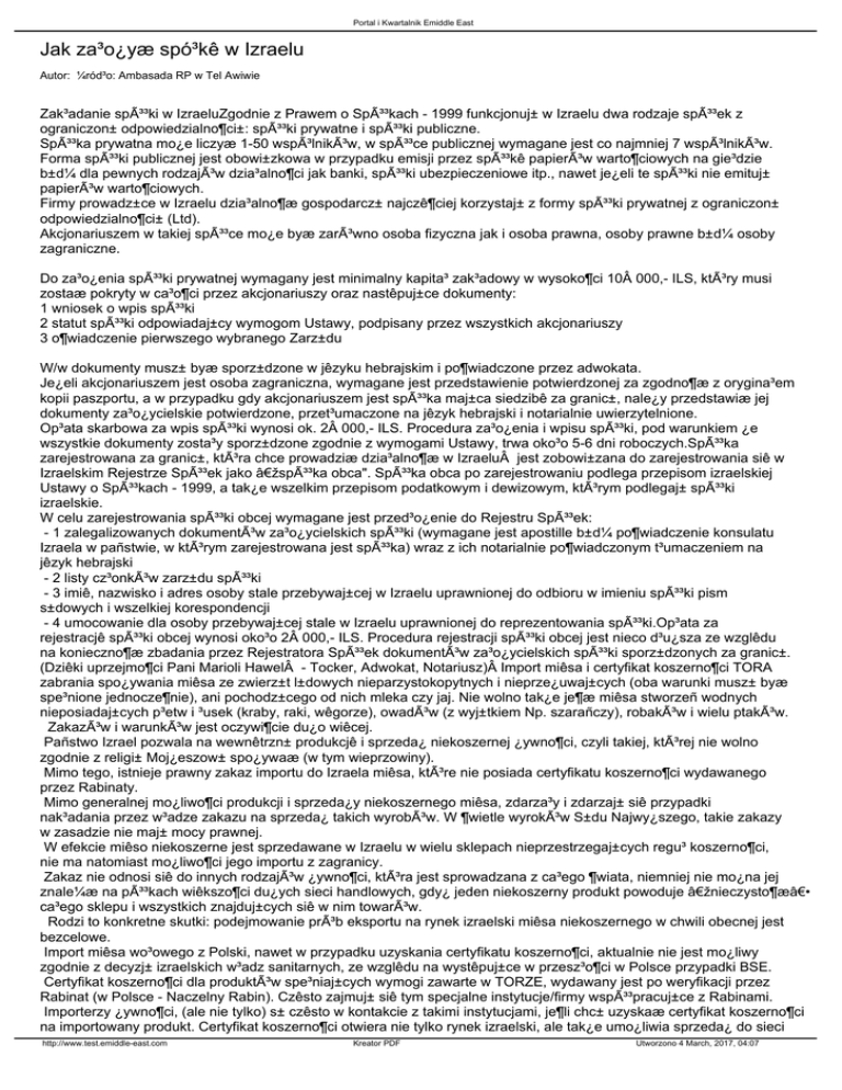 Jak za³o¿yć spółkę w Izraelu - EMIDDLE