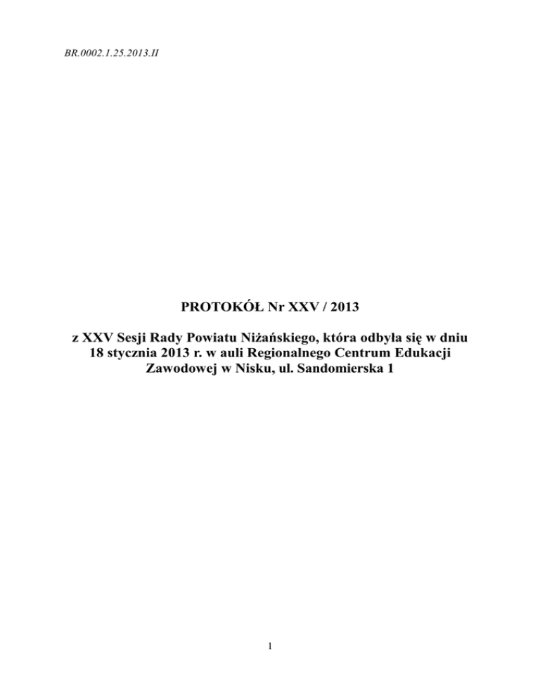 PROTOKÓŁ Nr XXV / 2013 z XXV Sesji Rady Powiatu Niżańskiego