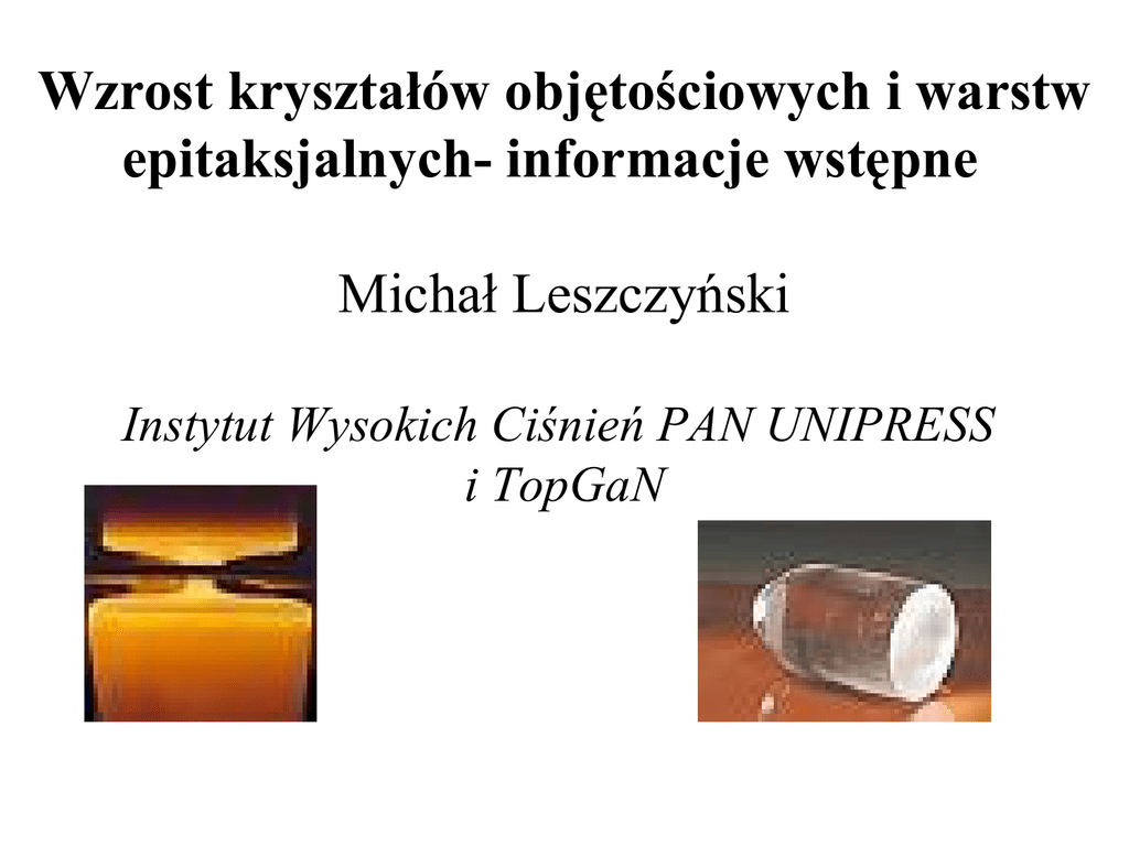 Wzrost kryształów objętościowych i warstw epitaksjalnych- informacje wstępne Michał Leszczyński Instytut Wysokich Ciśnień PAN UNIPRESS i TopGaN Plan wykładu • Laboratoria wzrostu kryształów w Warszawie • Po co nam kryształy półprzewodników? • Podłoża, np., Si • Epitaksja MBE • Epitaksja MOVPE • Charakteryzacja kryształów Firmy w Warszawie • CEMAT-SILICON- spin-off z Instytutu Technologii Materiałów Elektronicznych, kryształy krzemu • Ammono – absolwenci UW+Nichia, kryształy podłożowe GaN • TopGaN- spin-off z Instytutu Wysokich Ciśnień PAN, kryształy podłożowe GaN, epitaksja (AlGaIn)N, diody laserowe • Vigo- spin-off z Wojskowej Akademii Technicznej, epitaksja HgCdTe, detektory podczerwieni • EpiLab- spin-off z Instytutu Technologii Materiałów Elektronicznych, epitaksja IIIV, SiC, grafen Nagroda dla Ammono za podłoża GaN- CSEurope 2012 Laboratoria w Warszawie • Instytut Technologii Materiałów Elektronicznych –GaN, GaAs, InP, SiC, kryształy tlenkowe, i in., kryształy objętościowe i epitaksja • Instytut Wysokich Ciśnień PAN- GaN, kryształy objętościowe i epitaksja • Instytut Fizyki PAN- kryształy tlenkowe, II-VI, GaN, i in., kryształy objętościowe i epitaksja • Wydział Fizyki UW- epitaksja III-V i GaN • Wydział Fizyki PW- epitaksja III-V • Instytut Technologii Elektronowej – epitaksja III-V W 2012 w Warszawie: • Działa około 100 reaktorów do wzrostu kryształów objętościowych • Około 25 reaktorów epitaksjalnych • Zatrudnionych bezpośrednio przy wzroście kryształów jest ok. 400 osób + 400 przy charakteryzacji • 4 wspomniane firmy przynoszą dochód ok. 30 mln Eur rocznie • • 2020- co najmniej 2 razy więcej Nowe laboratoria w Warszawie • Centrum Zaawansowanych Materiałów, Politechnika, IWC PAN, IF PAN CEZAMAT • Centrum Nowych Technologii UW CENT Kryształy półprzewodników się przydają... Np., GaN Ciało stałe może mieć strukturę: Monokrystaliczną amorficzną polikrystaliczną Materiał monokrystaliczny: • Ma większą ruchliwość nośników elektrycznych • Mniej rozprasza światło w porównaniu z polikryształem • Ma mniej zlokalizowanych stanów w przerwie energetycznej w porównaniu z materiałem amorficznym • Łatwiej uzyskać gładkie interfejsy w strukturach warstwowych Co jest ważne w krysztale podłożowym? • Wielkość • Defekty Punktowe: zanieczyszczenia, wakanse, atomy międzywęzłowe, Rozciągłe: dyslokacje, wydzielenia, aglomeraty, błędy ułożenia, itp.. • Powierzchnia Wzrost podłoża, na przykład, objętościowego kryształu krzemu SiO2+2C→Si +2 CO (1500-2000oC) 98% purity Si+3HCl→SiHCl3 +H2 (BCl3, FeCl3, itp., usunięte przez destylację) SiHCl3 +H2→Si +3HCl Si polikrystaliczny 11N • Metoda Czochralskiego • Polikrystaliczny krzem jest topiony i trzymany trochę poniżej 1417 °C, a z zarodka monokrystalicznego wyrasta kryształ. • Szybkość wyciągania zarodka, rozkład temperatur, szybkość rotacji- do optymalizacji Wzrost kryształu krzemu 10-50 mm/h kwarcowy reaktor źródłem tlenu Obróbka kryształu Figure 4.20 Cięcie na plasterki (wafle-wafers) Trawienie chemiczne dla usunięcia zniszczeń powierzchni i zanieczyszczeń Figure 4.25 Ilość procesorów 1.5 cm x 1.5 cm2 88 die 200-mm wafer 232 die 300-mm wafer Figure 4.13 Polerowanie Wzrost epitaksjalny, na przykład warstw AlGaInN DEFINICJA Epitaksja- nakładanie warstw monokrystalicznych na podłoże monokrystaliczne wymuszające strukturę krystaliczną warstwy. Diody elektroluminescencyjne LED + GaN:Mg 100nm Al0.20GaN:Mg 60nm 4QW QW – InXGa1-XN/QB – InYGa1-YN:Si In0.02GaN:Si 50nm Al0.16GaN:Si 40nm GaN:Si 500nm Diody laserowe HEMT, także sensory gazów i cieczy source gate Schottky diode metal (e.g. aluminum) ohmic ohmic n-AlGaAs tb δ i-AlGaAs i-GaAs Insulating substrate 2DEG drain Detektory światła Ogniwa słoneczne Metody wzrostu warstw epitaksjalnych • Molecular Beam Epitaxy (MBE) • Metalorganic Vapour Phase Epitaxy (MOVPE), czasami zwane MOCVD Zasada działania MBE MBE Appropriate other meanings of MBE Mostly Broken Equipment Massive Beer Expenditures Maniac Bloodsucking Engineers Mega-Buck Evaporator Many Boring Evenings (how do you think this list came about?) Minimal Babe Encounters (see previous item) Mainly B.S. and Exaggeration Medieval Brain Extractor Money Buys Everything Make Believe Experiments Management Bullshits Everyone Malcontents, Boobs, and Engineers Music, Beer, and Excedrin RHEED- kontrola wzrostu warstw MBE RHEED- reflection high energy electron diffraction Gładkość Parametry sieci Rekonstrukcja powierzchni Szybkość wzrostu Mod wzrostu poprzez płynięcie stopni (step-flow) Brak oscylacji RHEED AFM TEM struktury laserowej wzrastanej metodą MBE 10 nm MOVPE-metalorganic chemical vapour phase epitaxy A(CH3)3+NH3->AN+3CH4 A= Ga, In, Al MOVPE Reflektometria laserowa In-situ Przepływ górny (gaz nośny) podłoże Wlot grupy V NH3 SiH4 gaz nośny grzanie indukcyjne Wlot grupy III TMGa TMAl TMIn Cp2Mg Gaz nośny grafitowa podstawa pokryta SiC MOVPE Układ gazowy Reaktor Wielowaflowe (multiwafer) reaktory MOVPE Reflektometria laserowa (monitorowanie wzrostu struktury niebieskiej diody laserowej) Problem niedopasowania sieciowego • Homoepitaksja • Heteroepitaksja • Przypadek warstw naprężonych • Przypadek warstw zrelaksowanych III. Relaksacja sieci Naprężone- fully strained Zrelaksowane- relaxed Wartości krytyczne do relaksacji 10000 critical thickness (nm) dislocations 1000 100 cracking 10 0.0 0.2 0.4 0.6 0.8 1.0 1.2 1.4 1.6 mismatch (%) Wartości niedopasowania i grubości warstw występujących w laserze niebieskim Wartości krytyczne zależą nie tylko od grubości i niedopasowania warstwy epitaksjalnej, ale także od: • Dezorientacji (miscut) podłoża • Domieszkowania • Obecności defektów w podłożu • Warunków wzrostu (temperatura, przepływy reagentów, ciśnienie) • Grubości podłoża