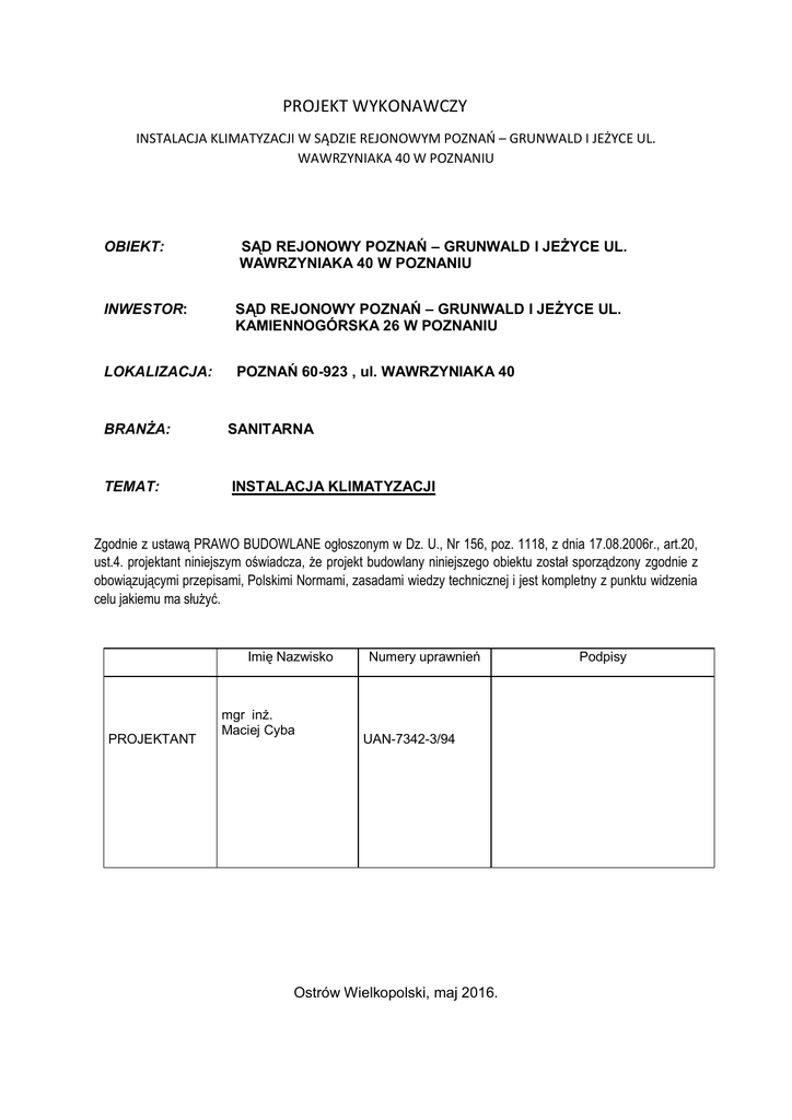 PROJEKT WYKONAWCZY jezyce klima etapy