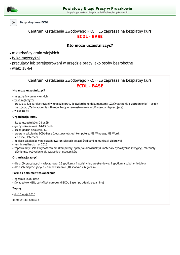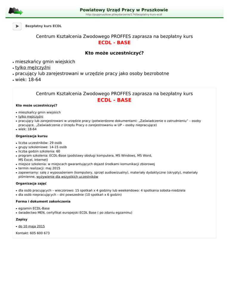 ECDL - BASE - Powiatowy Urząd Pracy w Pruszkowie