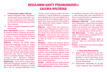 REGULAMIN KARTY PODARUNKOWEJ GALERIA WILEŃSKA