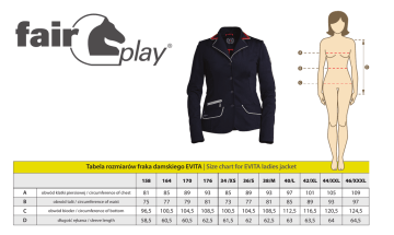 Tabela rozmiarów fraka damskiego EVITA | Size chart for EVITA